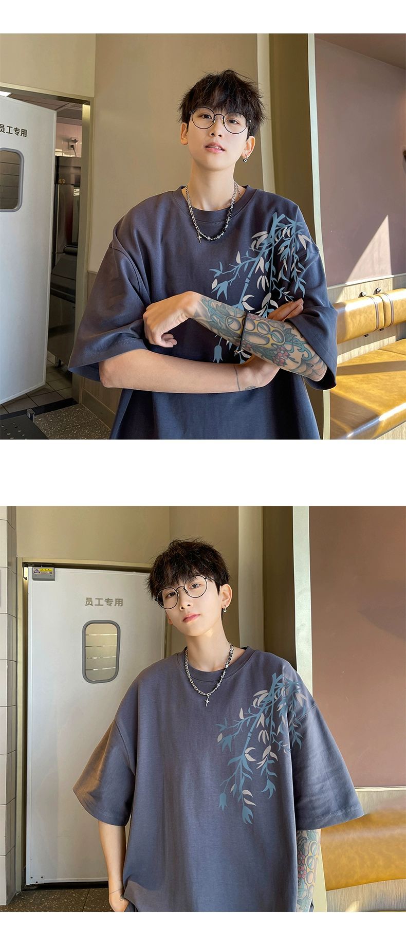 中国風半袖tシャツ男性夏国潮ゆるい大サイズカップル