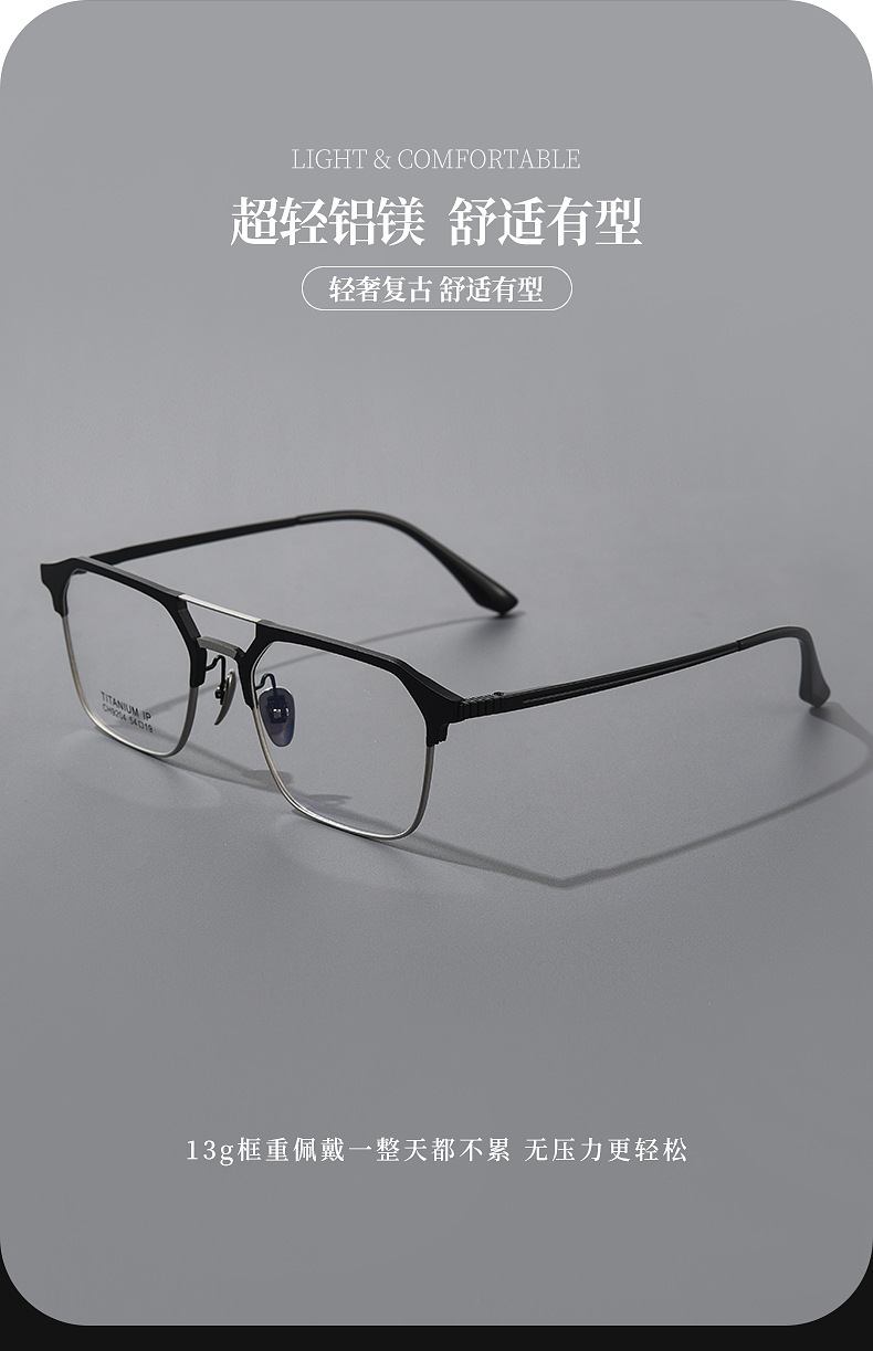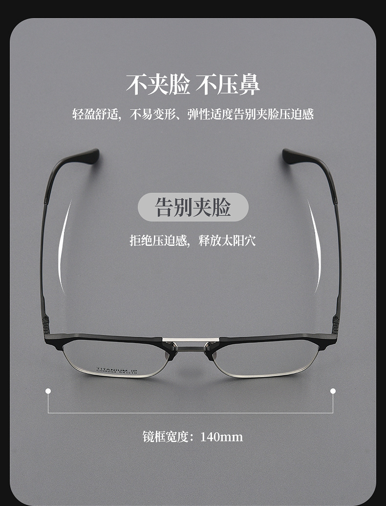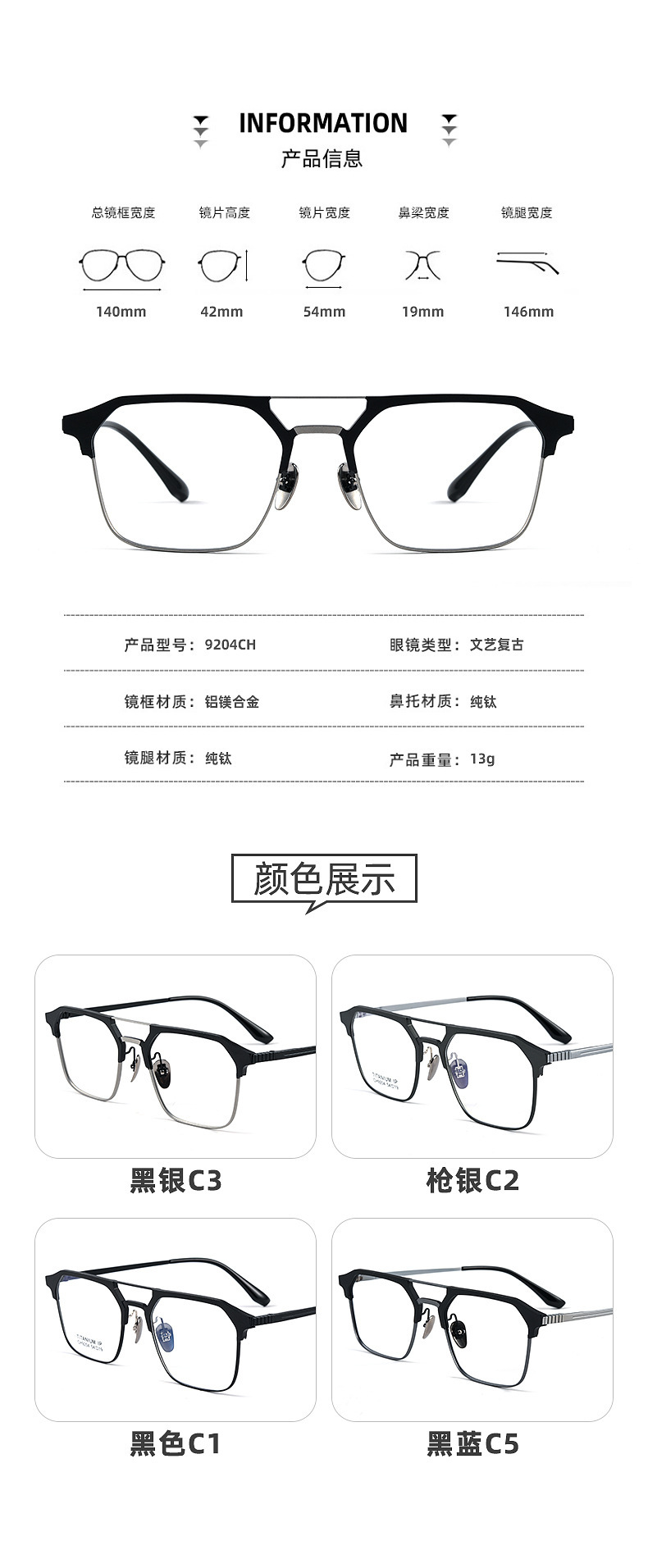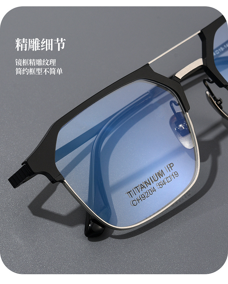 新品bsf9204chチタンメガネフレームビジネス纯粋なチタンメガネフレームダブル梁レトロ近视メガネ男