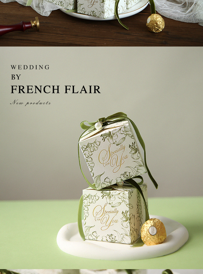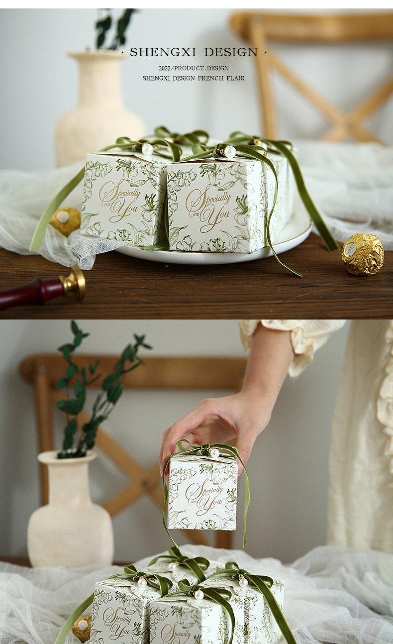 2025年夢の庭園フラワーウェディングキャンディボックス白緑韓国風結婚式キャンディ包装箱テーブルギフトボックステーブルキャンディボックス