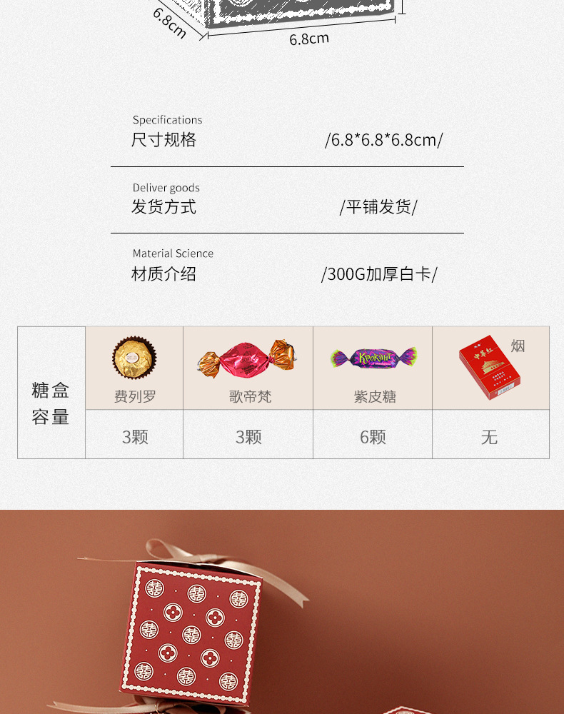 新商品の喜糖箱創意新中国式の喜糖袋の糖果箱の赤いシンプルな結婚式の糖箱の箱の大きいサイズはタバコを詰めます。