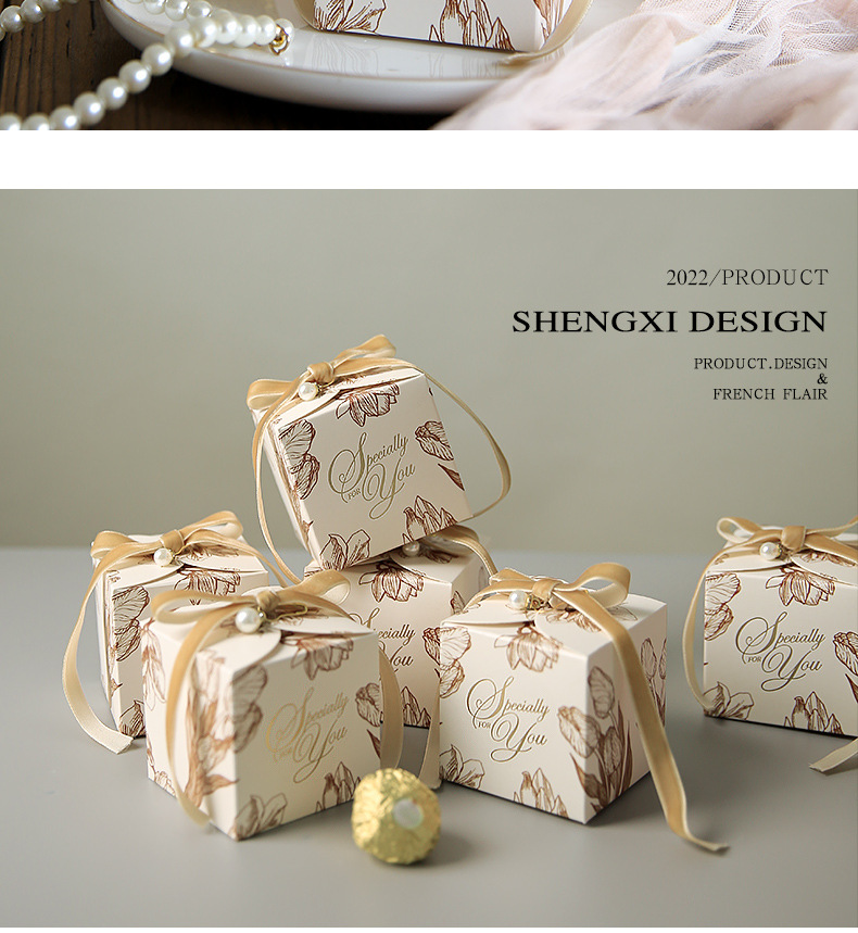 オリジナルの結婚式用正方形キャンディボックス、インスタ映えするウェディング専用キャンディボックス、お返し用包装紙箱、ギフトボックス