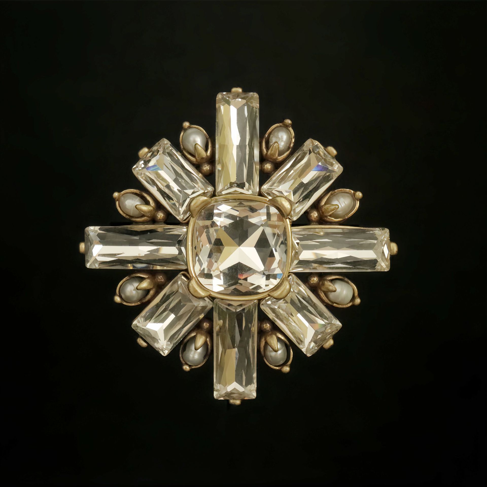 洗練されたシンプルなモザイクライン石百合幾何ブローチ全銅優雅スーツコート胸花アクセサリー