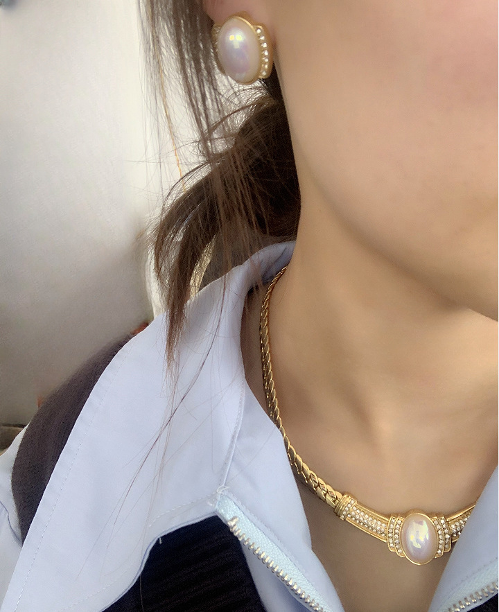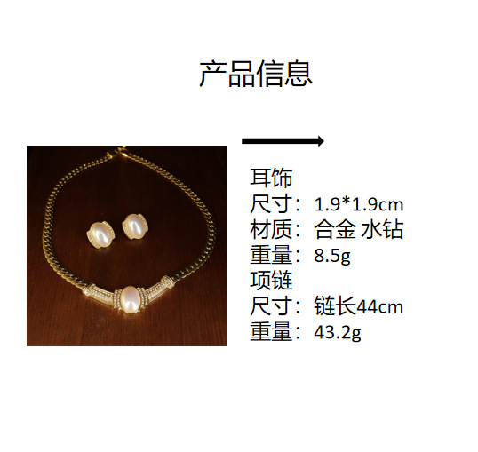 レトロ宮廷風真珠水滴ピアスセット精致重工小衆デザイン感フリンジネックレス