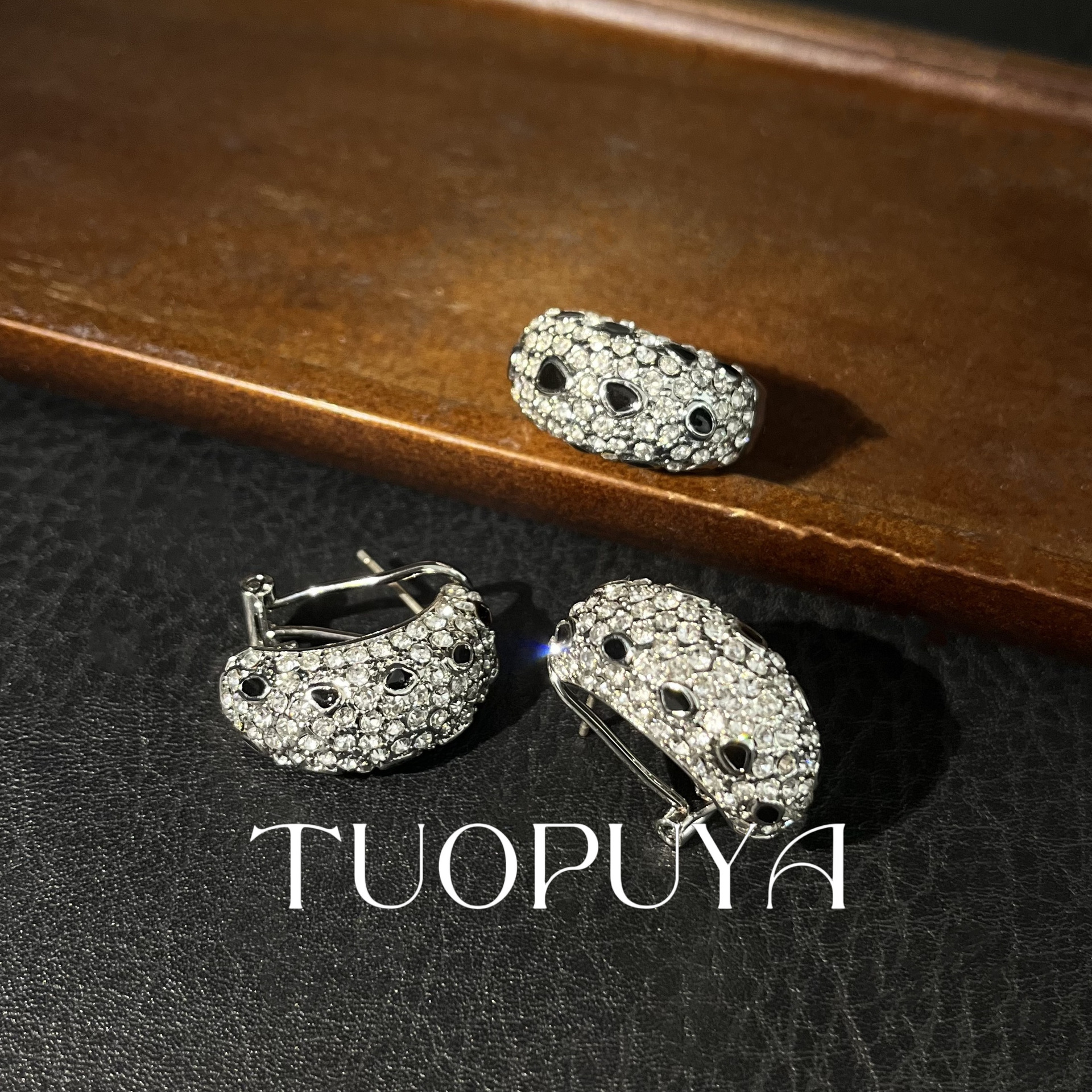 パーソナライズされたコールドスタイルのブラックドリップグレーズ多用途リング、シンプルなフルダイヤモンド幾何学的なオーバルイヤリングセット