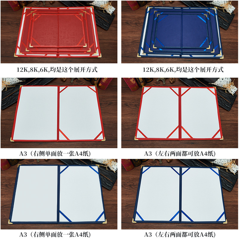 サイズ 紺色【小12k】表紙は15*21cmの内芯展開がa4紙より少し小さい,紺色a3 (右側片面にa4紙を1枚入れる),紺色a3 (左右両面にa4紙を入れることができる),紺色【大サイズ6k】 (表紙はa4サイズ、内芯a3は少し小さい),紺色【8k】表紙は17.5*25cmで、a3よりも少し小さい,紺色a3 (a3紙を1枚展開),レッド【小12k】表纸闭じ上15 * 21cm内芯展开a4纸より小さめ,レッドa3 (右側片面にa4用紙1枚入),赤色a3 (左右両面にa4紙を入れることができる),赤【大サイズ6k】 (表紙はa4サイズ、内芯a3は少し小さい),赤【8k】表紙は17.5*25cmで、a3よりも少し小さい,レッドa3 (a3用紙を1枚展開)