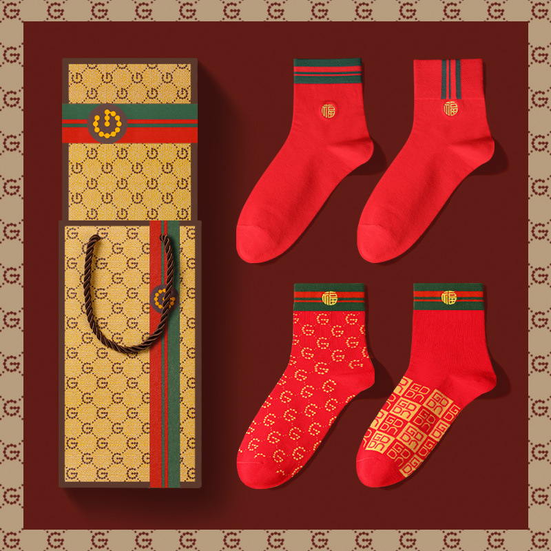 Gdad男性中筒靴下本命年おめでたい赤い綿質防臭吸汗ストッキング高級ギフトボックス