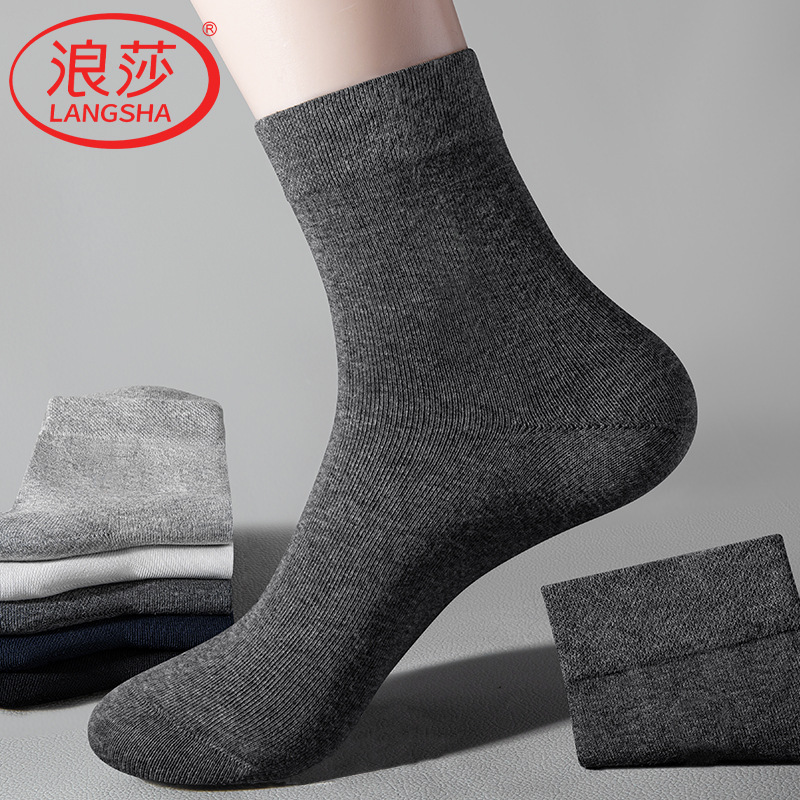 浪莎100%純綿メンズソックス 秋冬用無地メンズソックス 高密度カジュアルソックス 個別包装ビジネスメンズソックス