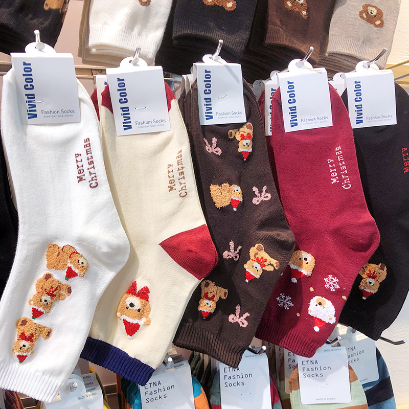 vividcolor新款圣诞帽子小熊卡通袜女中筒韩国袜子东大门圣诞棉袜