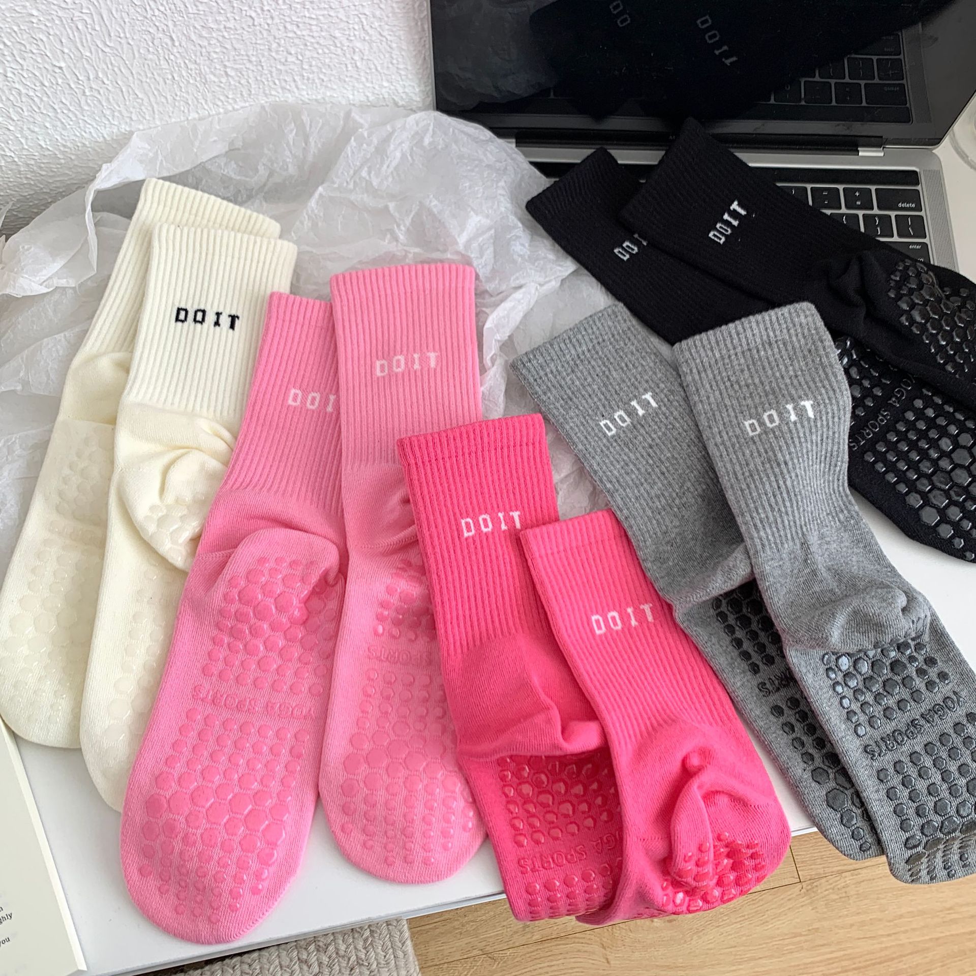 专业防滑硅胶纯色瑜伽普拉提室内健身运动袜跑步搭配鲨鱼裤中筒袜
