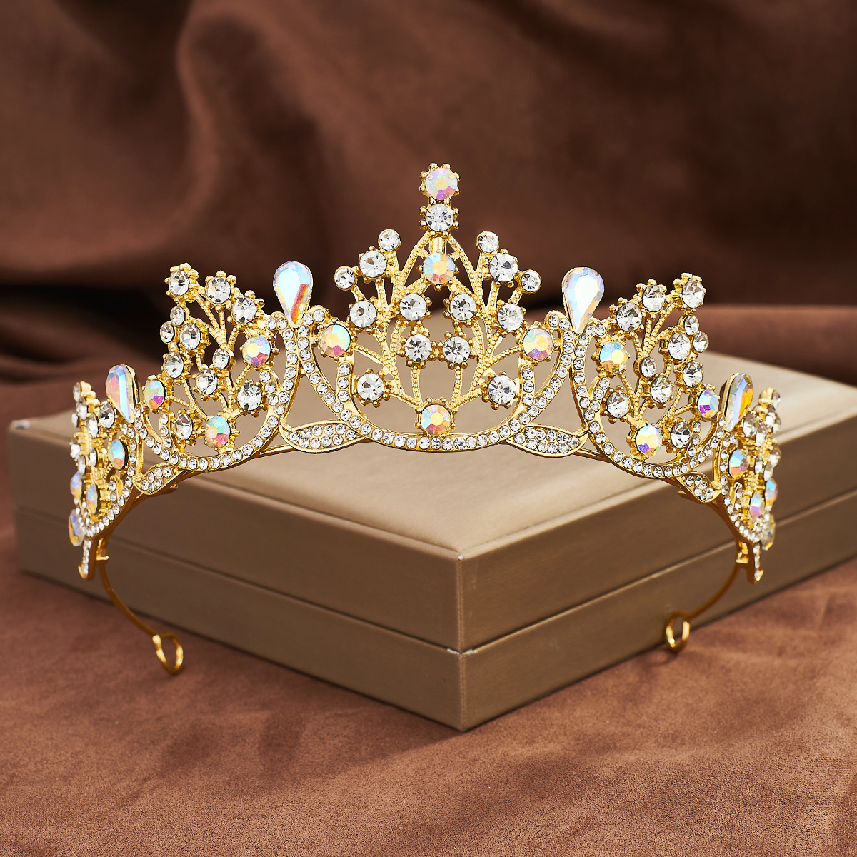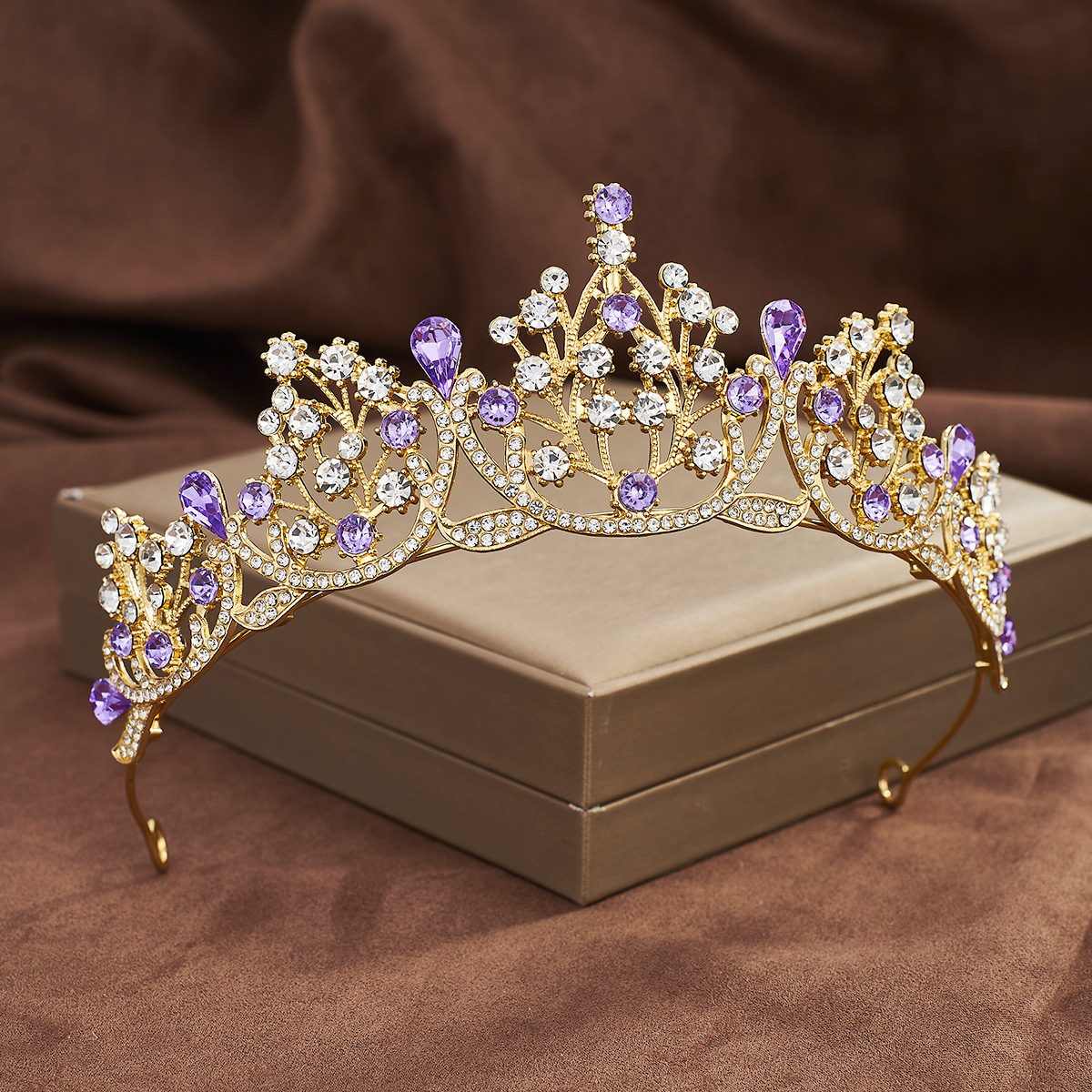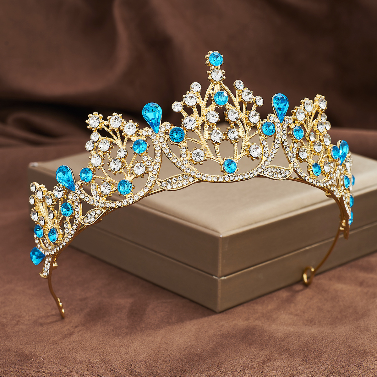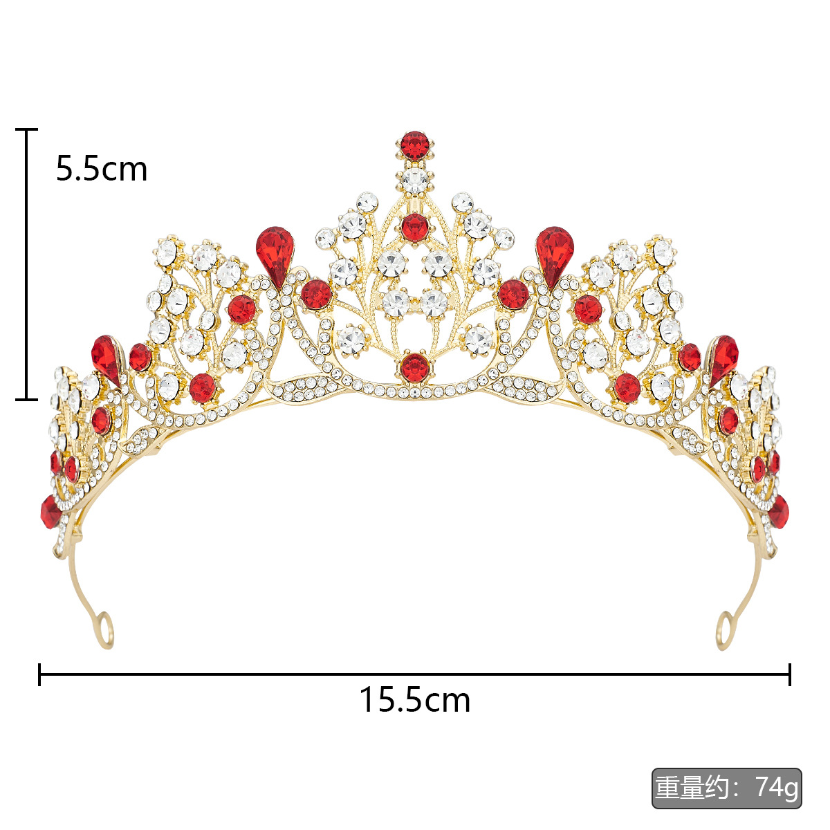 ヨーロッパとアメリカの花嫁用クラウンヘッドドレス、クロスボーダーカラフルラインストーンヘアバンド、バロック合金クラウン、ウェディングドレスアクセサリー