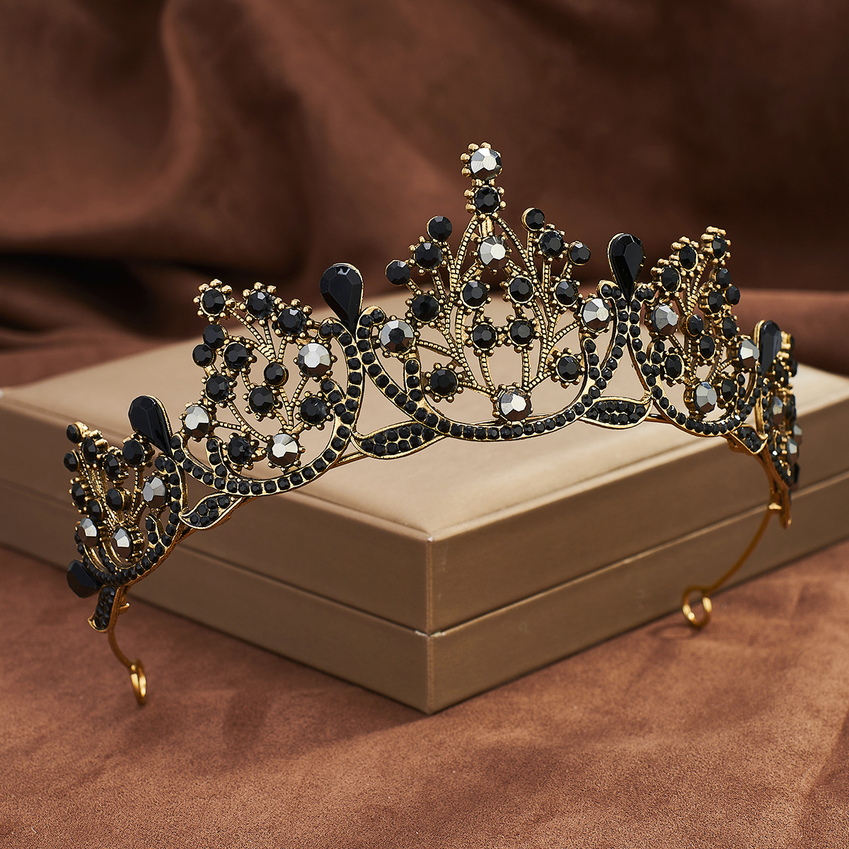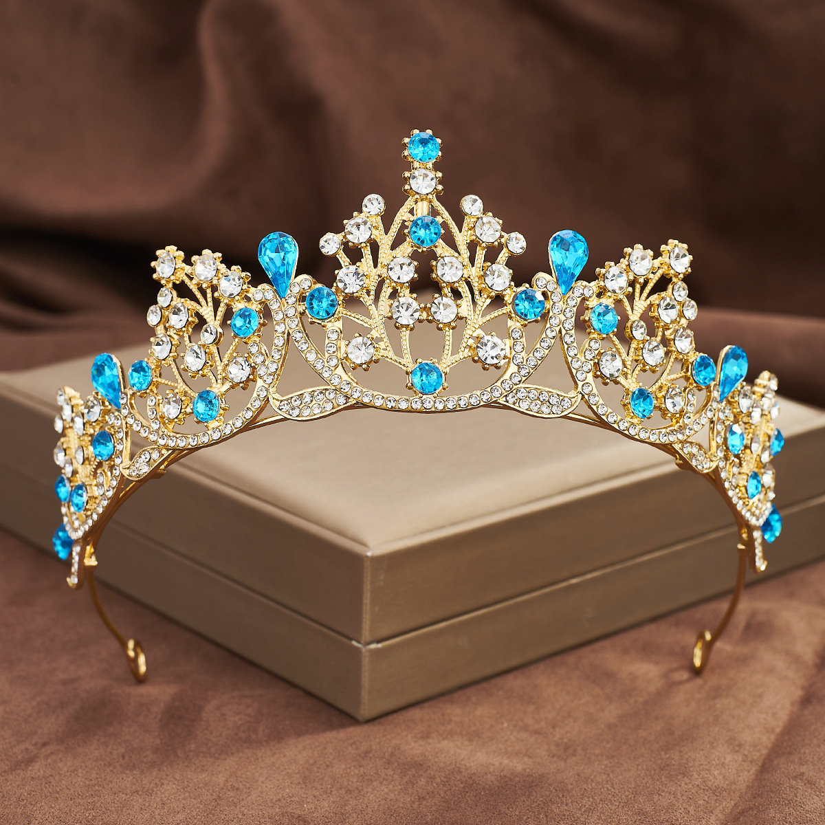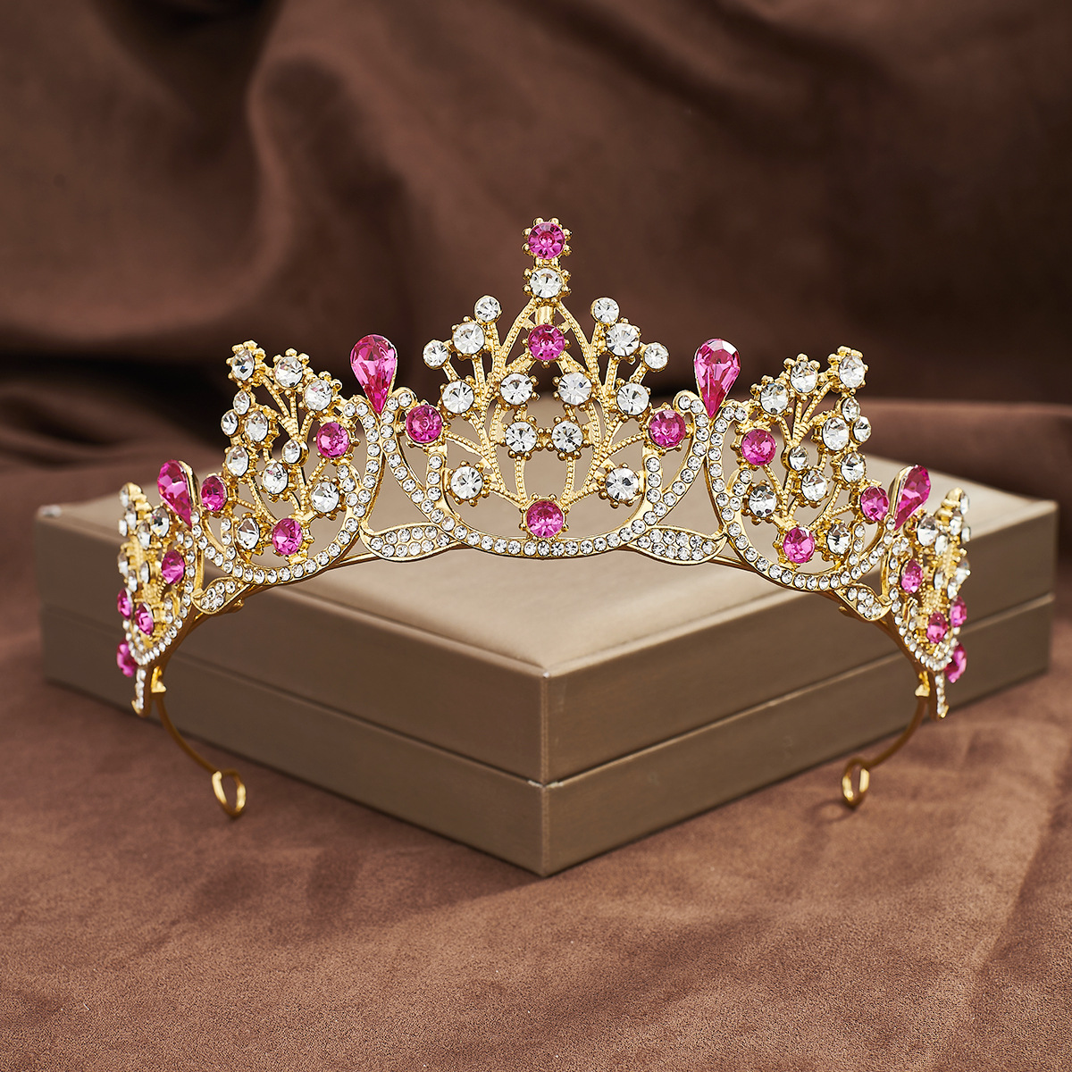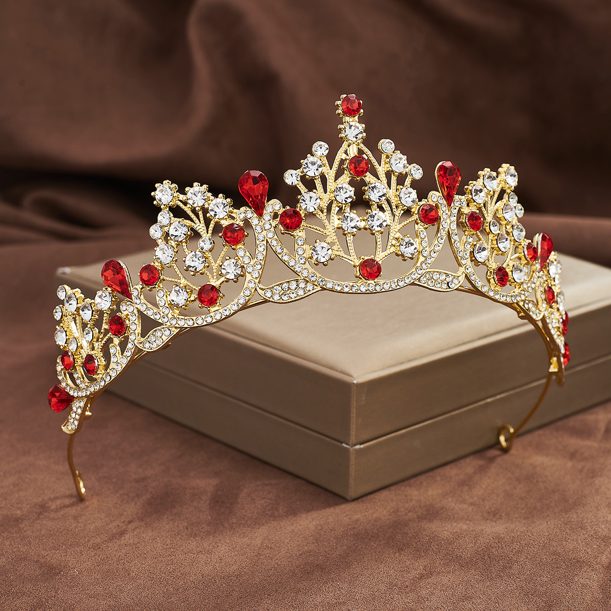 ヨーロッパとアメリカの花嫁用クラウンヘッドドレス、クロスボーダーカラフルラインストーンヘアバンド、バロック合金クラウン、ウェディングドレスアクセサリー