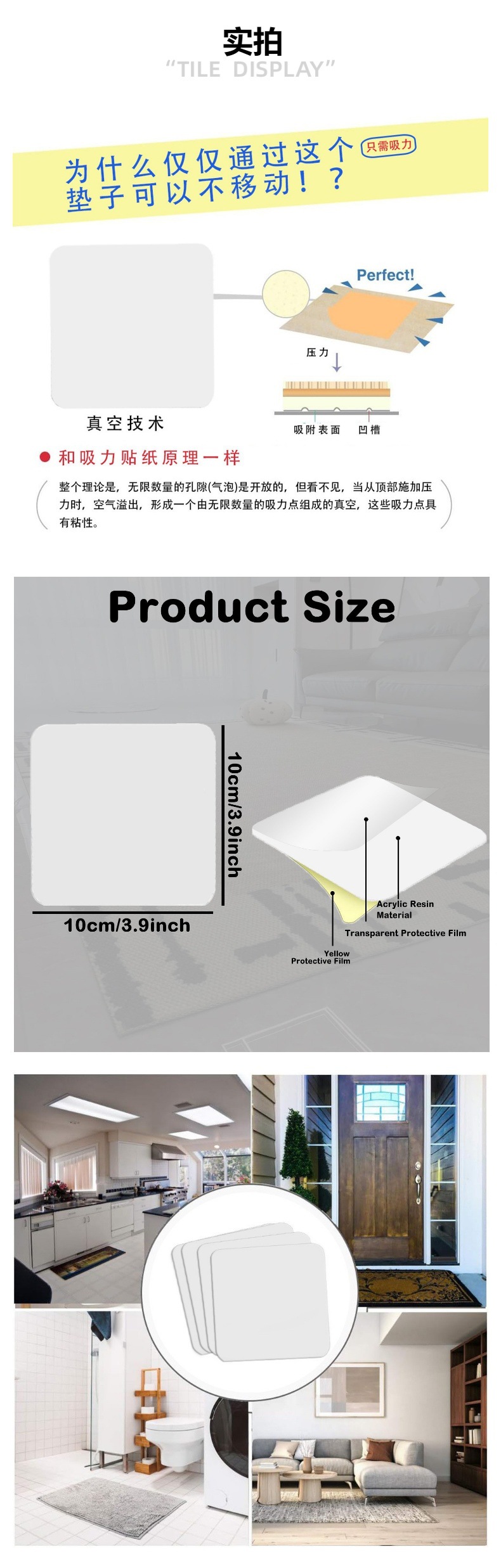 現物ゴムなし水洗い無痕滑り止めシールRug Pads Grippers真空吸着カーペット固定シール