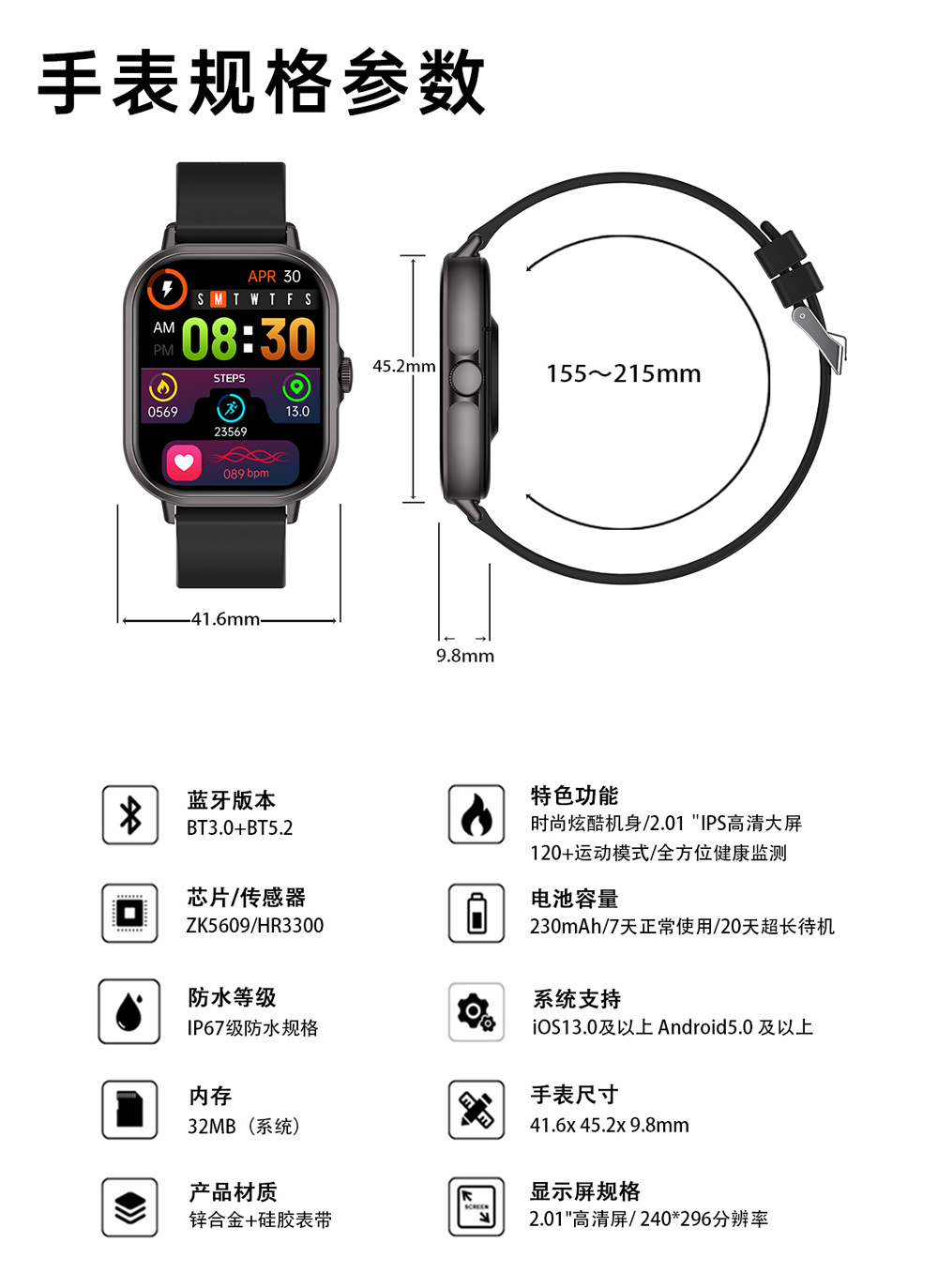 起爆金P98知能手環計歩血圧血酸素睡眠監視bluetooth通話知能腕時計