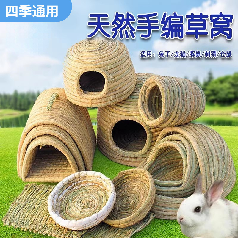 手工草编兔子窝 宠物窝兔子草窝荷兰猪芦丁鸡窝豚鼠松鼠宠物草垫