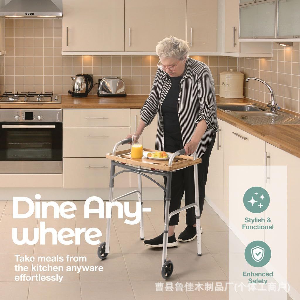 高齢者歩行器オフィス食品飲料モバイルテーブル竹折りたたみトレイ無垢材高齢者折りたたみトレイ