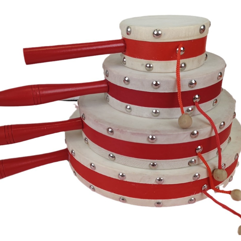 手でぐらぐらしているオルフ打楽器の子供の伝統的な早教具親子のインタラクティブなドラム