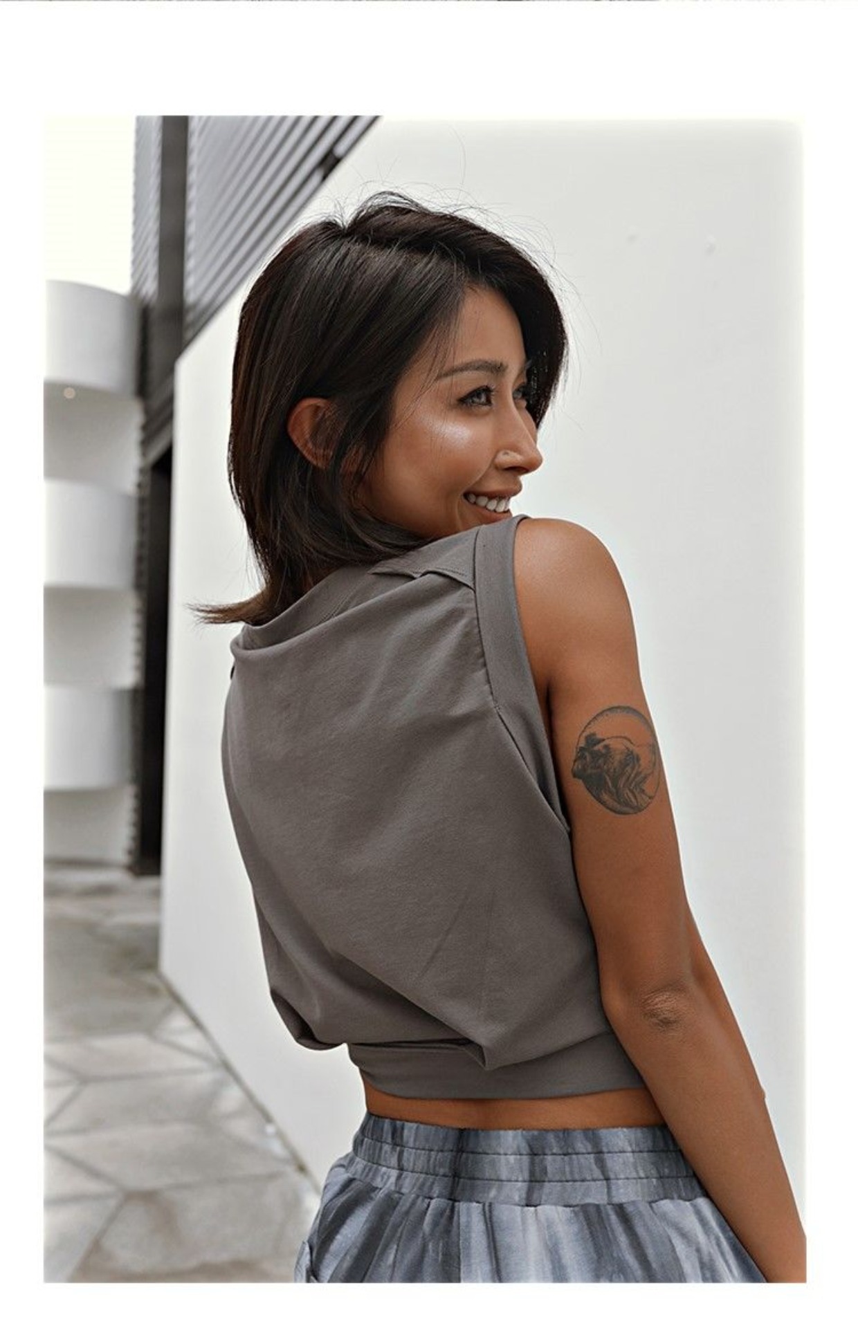 アメリカのデザイン感グレーのストラップのベスト女性秋冬の新型の修身はやせています。