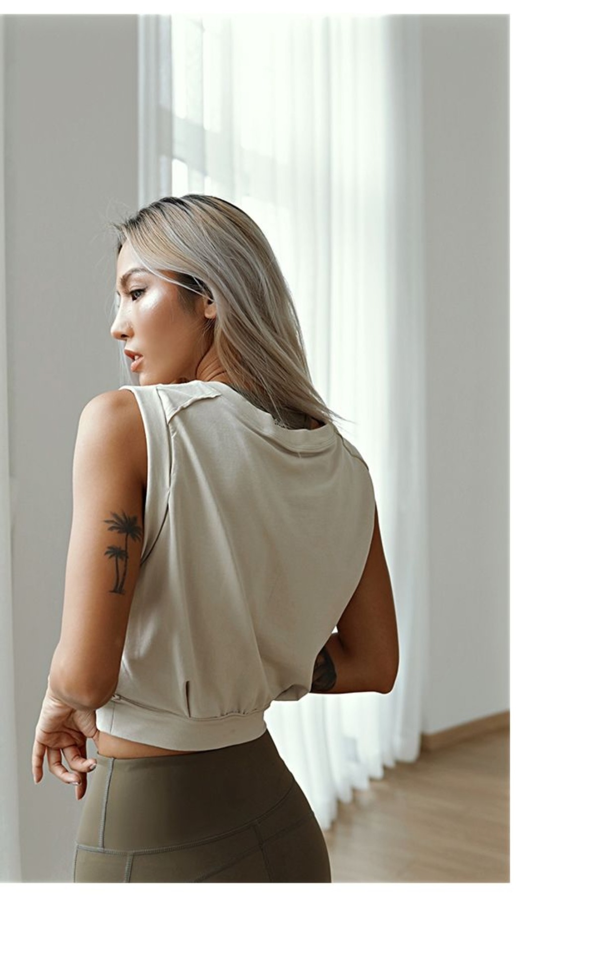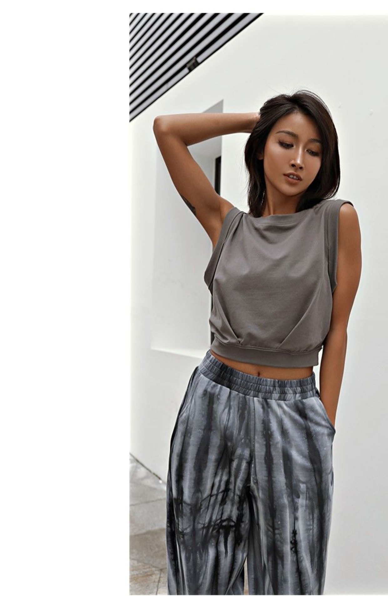 カジュアル欧米のスポーツノースリーブベストtシャツ女性の夏の快適なヨガ服はゆったりとしていて痩せています。
