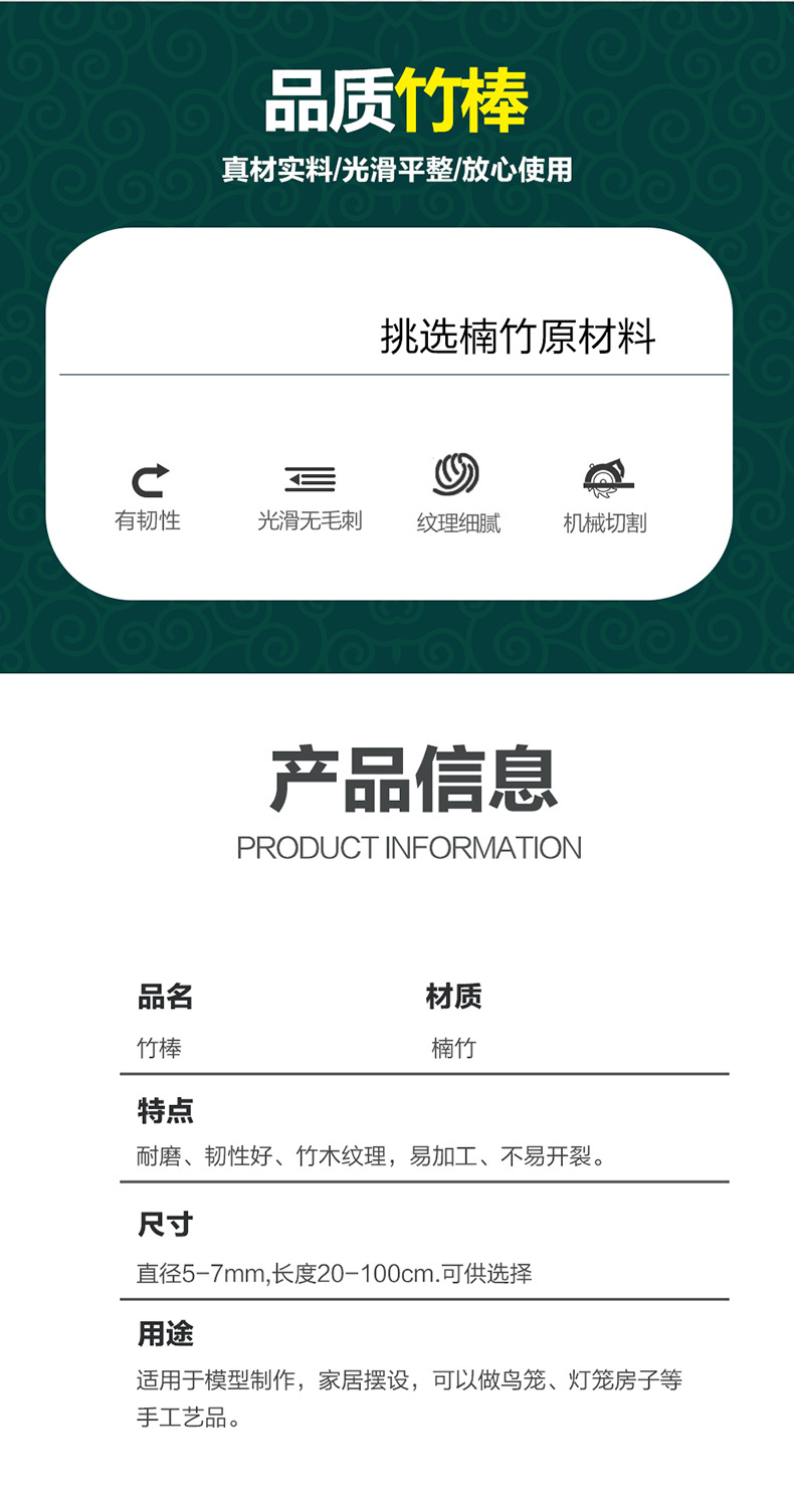 メーカー卸売り竹丸棒直径7mm竹棒diy手作り模型材料竹棒竹棒鳩籠そうめん棒