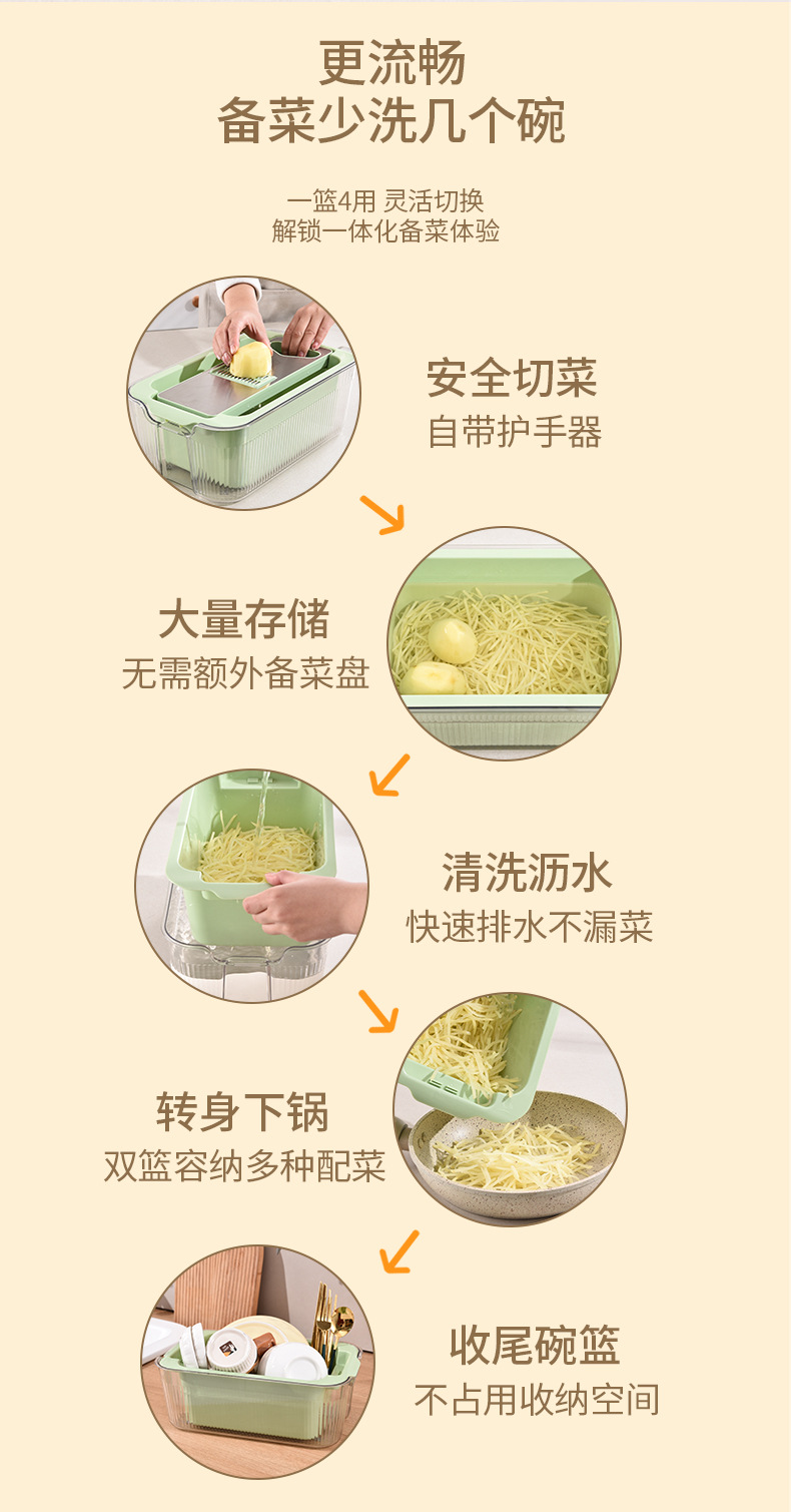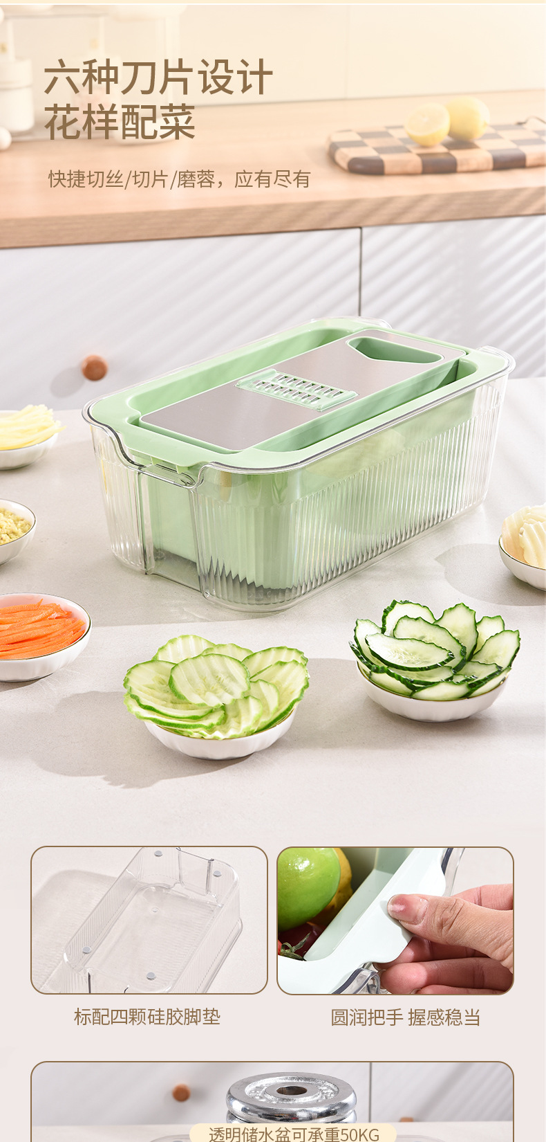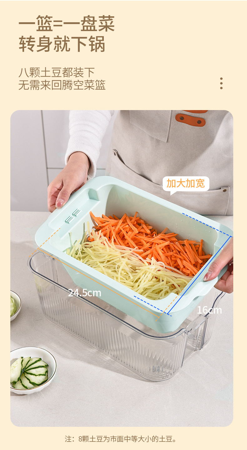 家庭用台所の野菜切り神器家庭用ジャガイモの糸切り器多機能大根の削りくずは水たまりかごを持っています。