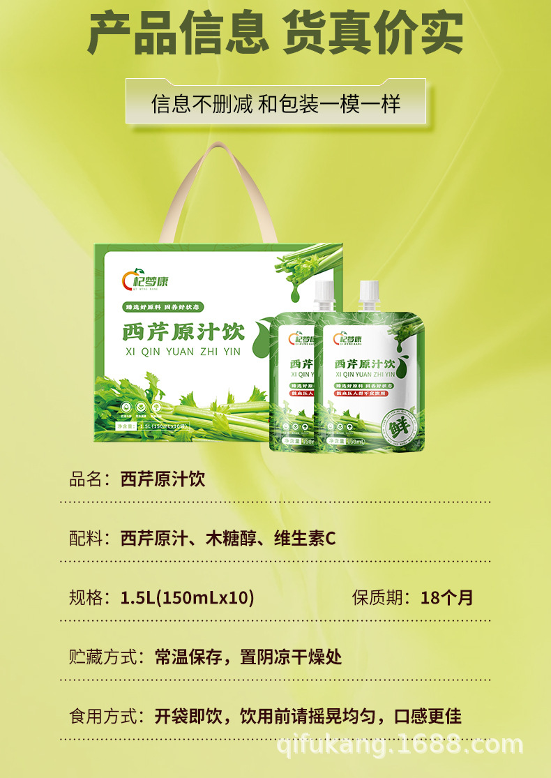 西芹原汁饮芹菜汁小西芹鲜榨果蔬汁西芹原浆现货批发代发