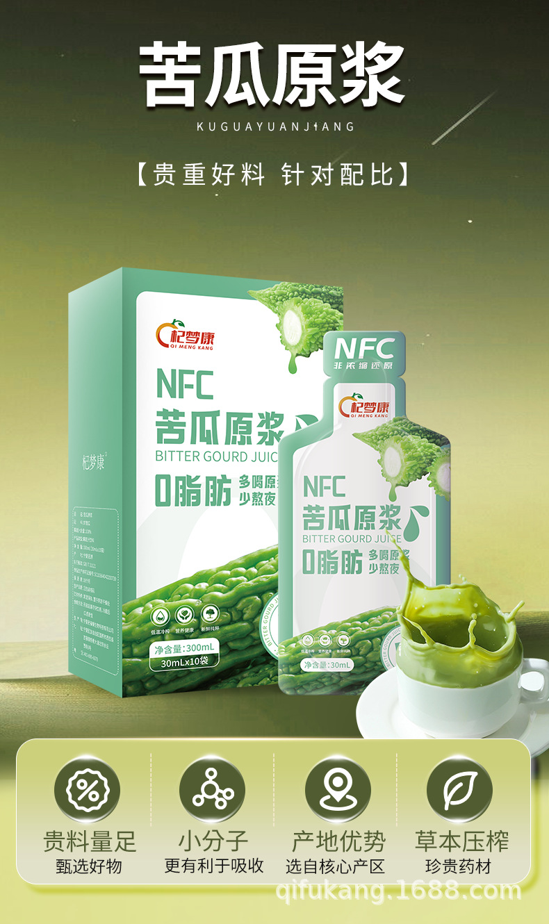 杞夢康100% 純ニガウリ汁0脂肪新鮮ニガウリ原漿パセリニガウリ果物野菜汁代食液体サラダ