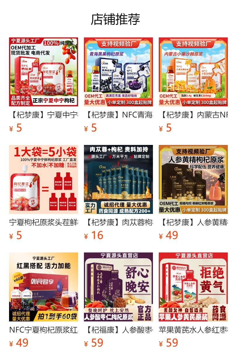 【杞夢康】寧夏中寧クコパルプ工場NFC生果生搾り原汁卸売ロット電気商代発