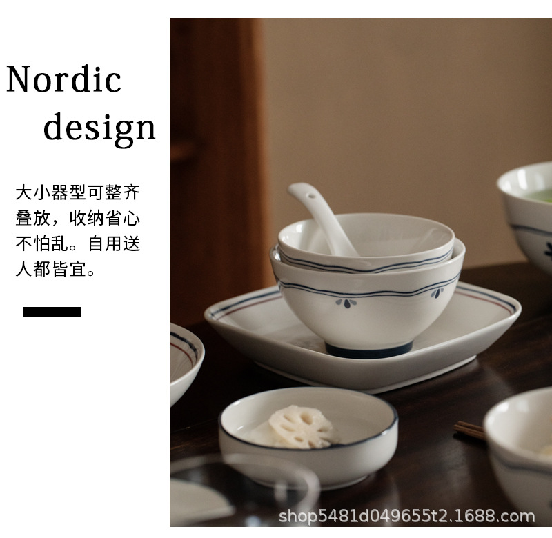 高颜値日本式碗陶磁器碗皿皿皿皿セット家庭用食器セットスープ碗麺食器潮州食器