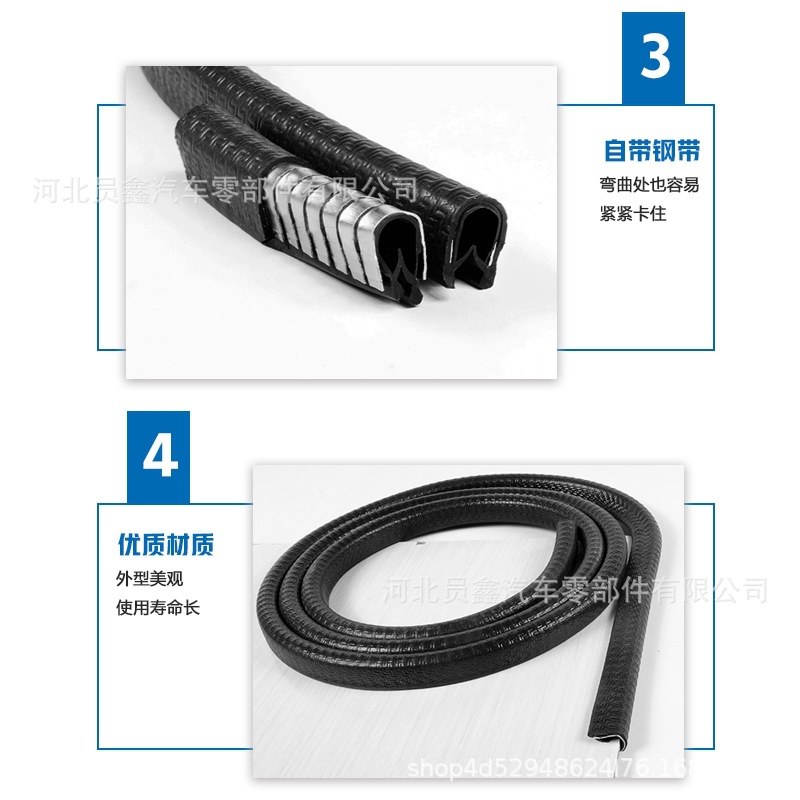 U型骨架包边条密封卡槽条玻璃机械封边防护橡胶条汽车门边防撞条