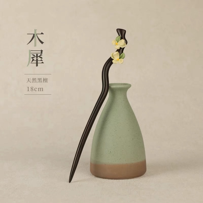 起爆新中国式クチナシ花黒檀木ヘアピンシンプル現代花ヘアピン女古風チャイナドレス漢服頭飾り