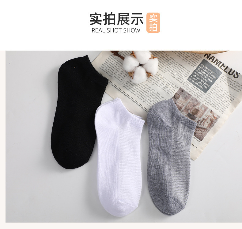 諸暨靴下卸売 黒白グレー無地ミドル丈靴下 秋用 防臭 メンズショートソックス 使い捨て靴下