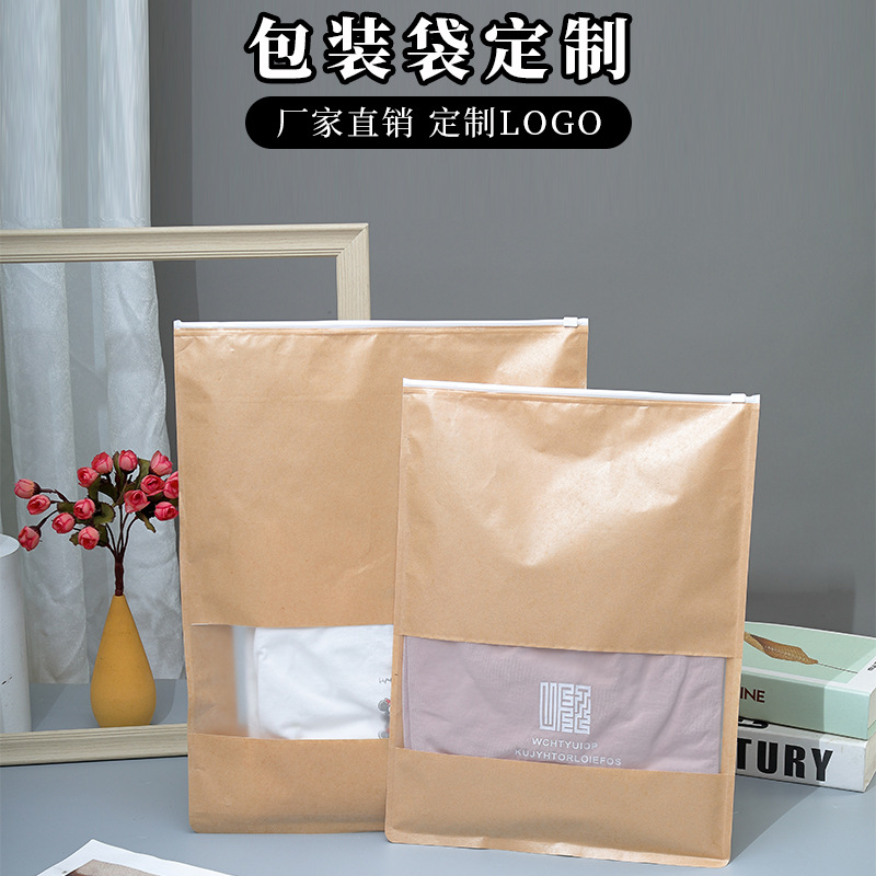 クラフト紙ジッパーバッグ衣類バッグ T シャツ包装袋防水ビジュアルウィンドウジッパーバッグ衣類スウェットシャツシール