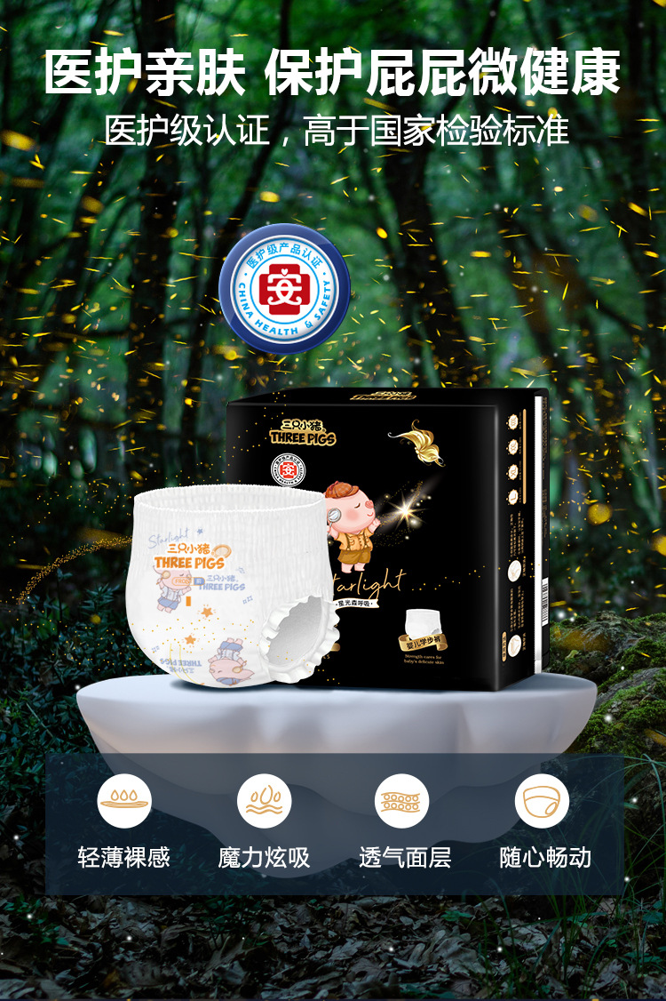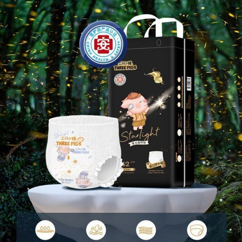 三匹の子豚の星の光森呼吸シリーズの医療看護クラスの赤ちゃんの超薄型の乾燥した通気性の紙おむつのズボンの卸売り