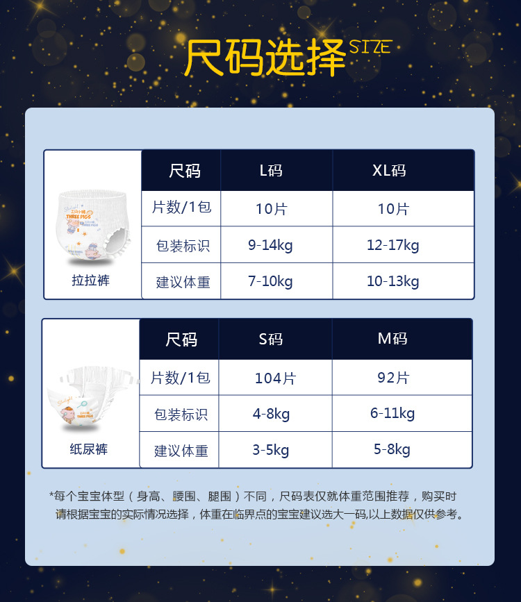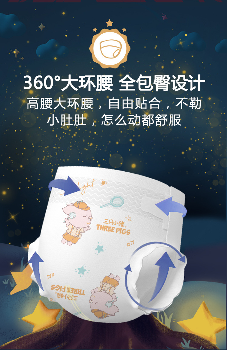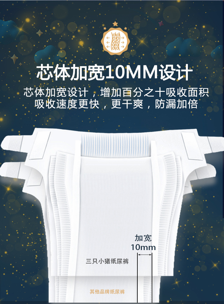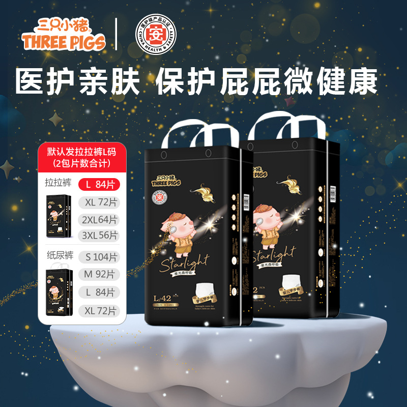 三只小猪黑猪医护呵肤干爽星光森系列纸尿裤超薄舒适拉拉裤尿包邮