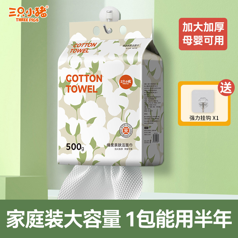3匹のコブタの洗顔タオル吊り式500g家庭の赤ちゃんが顔を拭くクレンジングタオルを1つ厚くして包装する