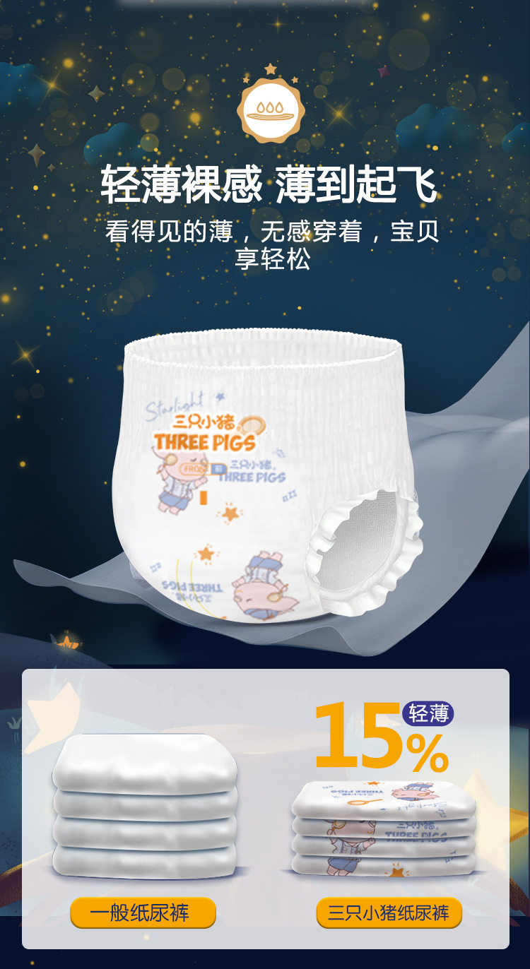 三匹の子豚の弱酸楽楽ズボンシリーズのズボンの赤ちゃんは超薄で乾燥しています。