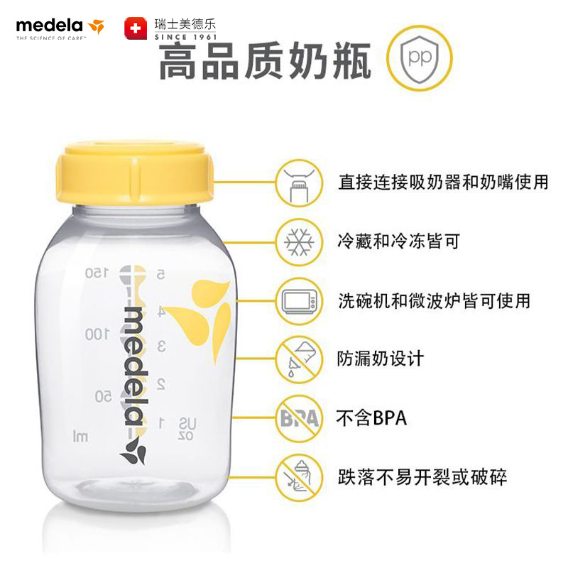 美德乐medela奶瓶标准口径可连吸奶器150mlpp储奶瓶独立包装盒