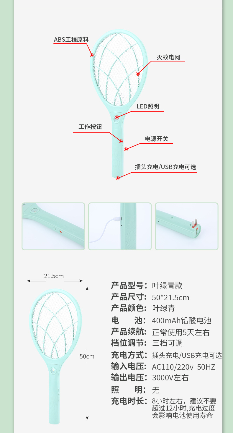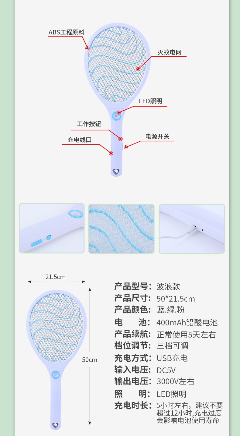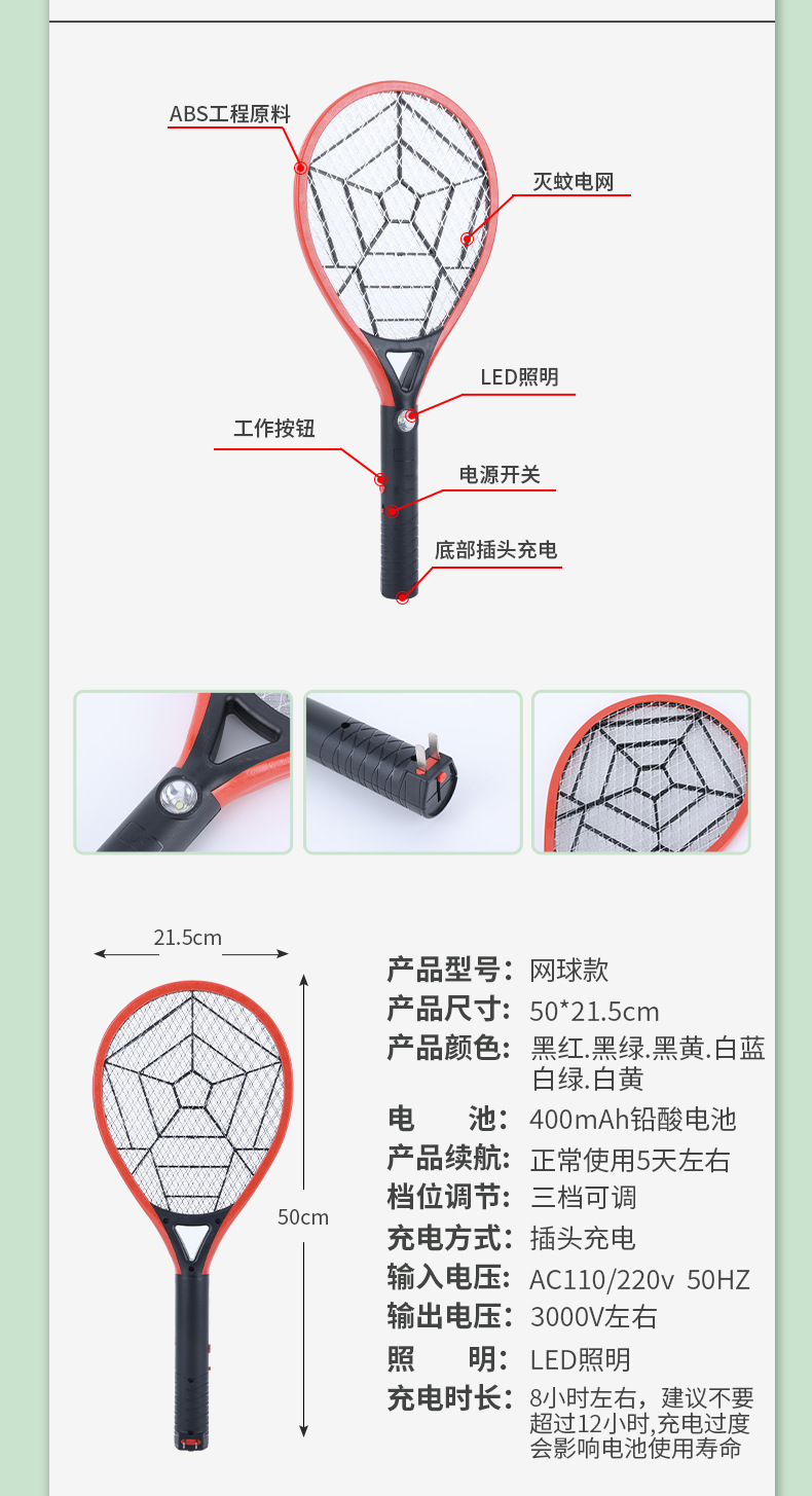新型電動蚊取り器、USB充電式家庭用電動蚊取り器、ハエたたき、LEDライト付き家庭用大型網面蚊取り器
