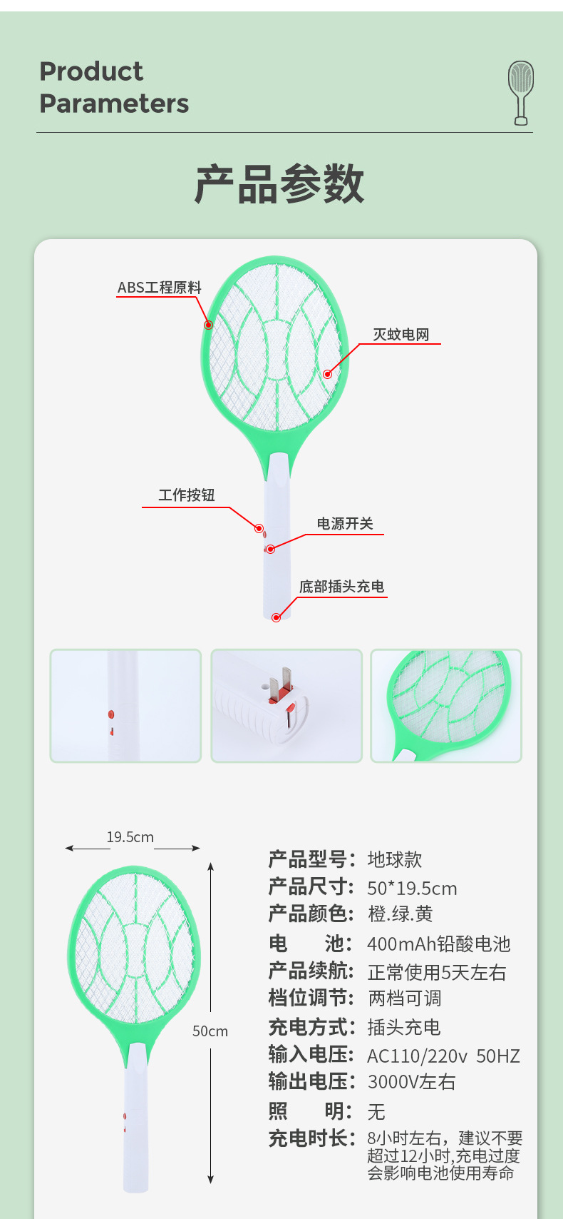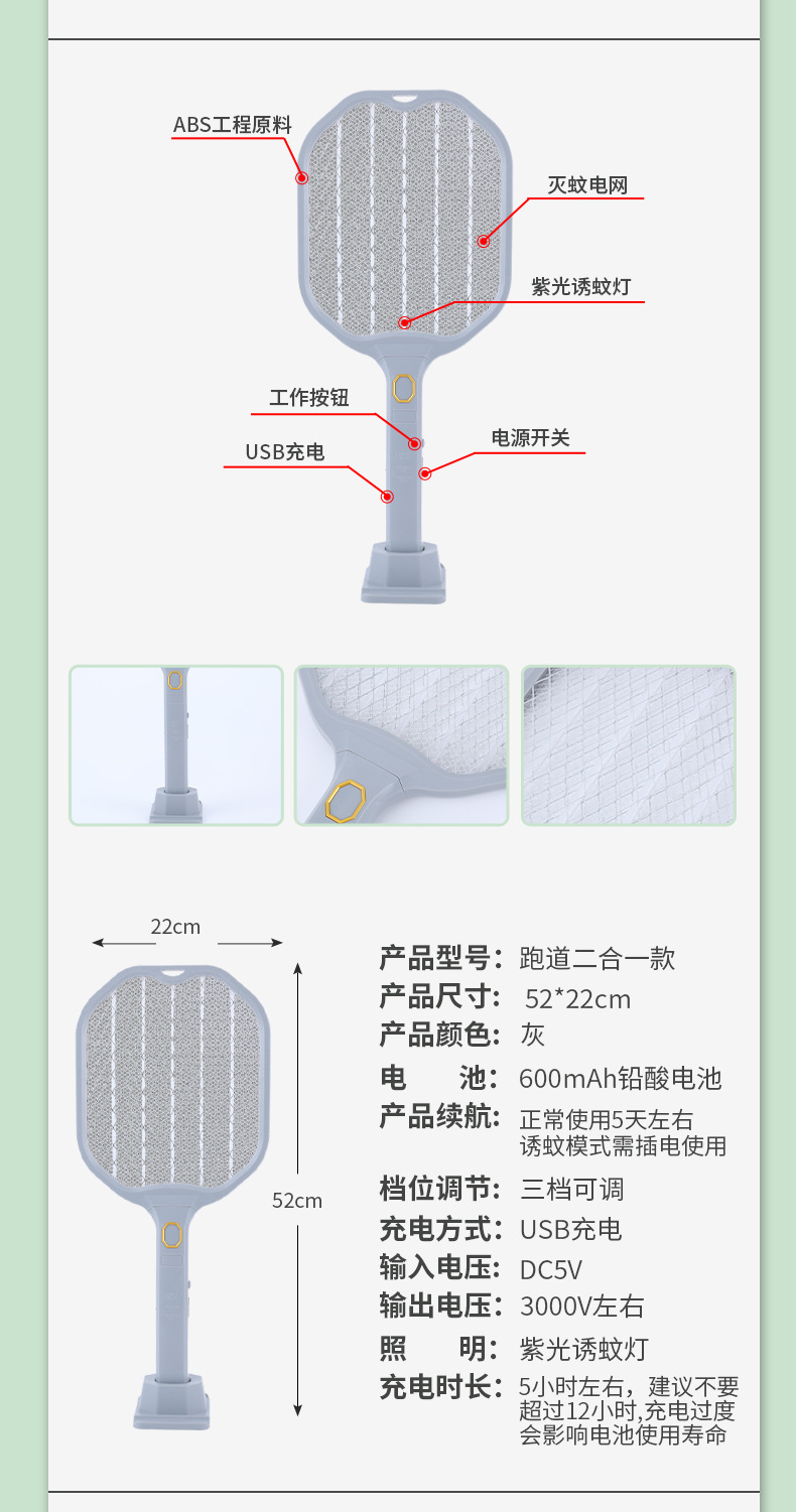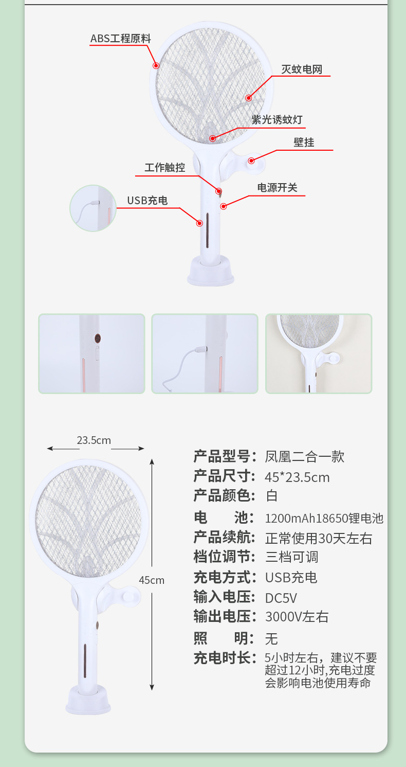 新型電動蚊取り器、USB充電式家庭用電動蚊取り器、ハエたたき、LEDライト付き家庭用大型網面蚊取り器
