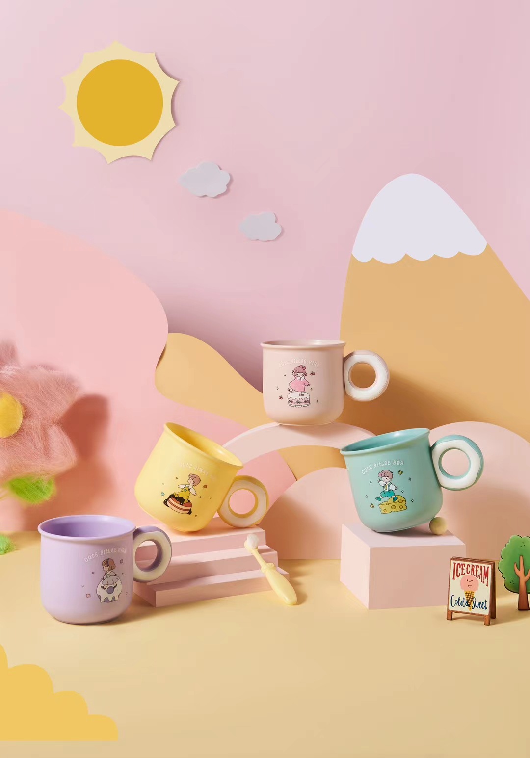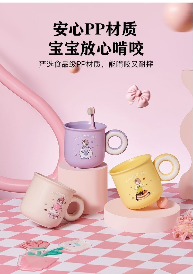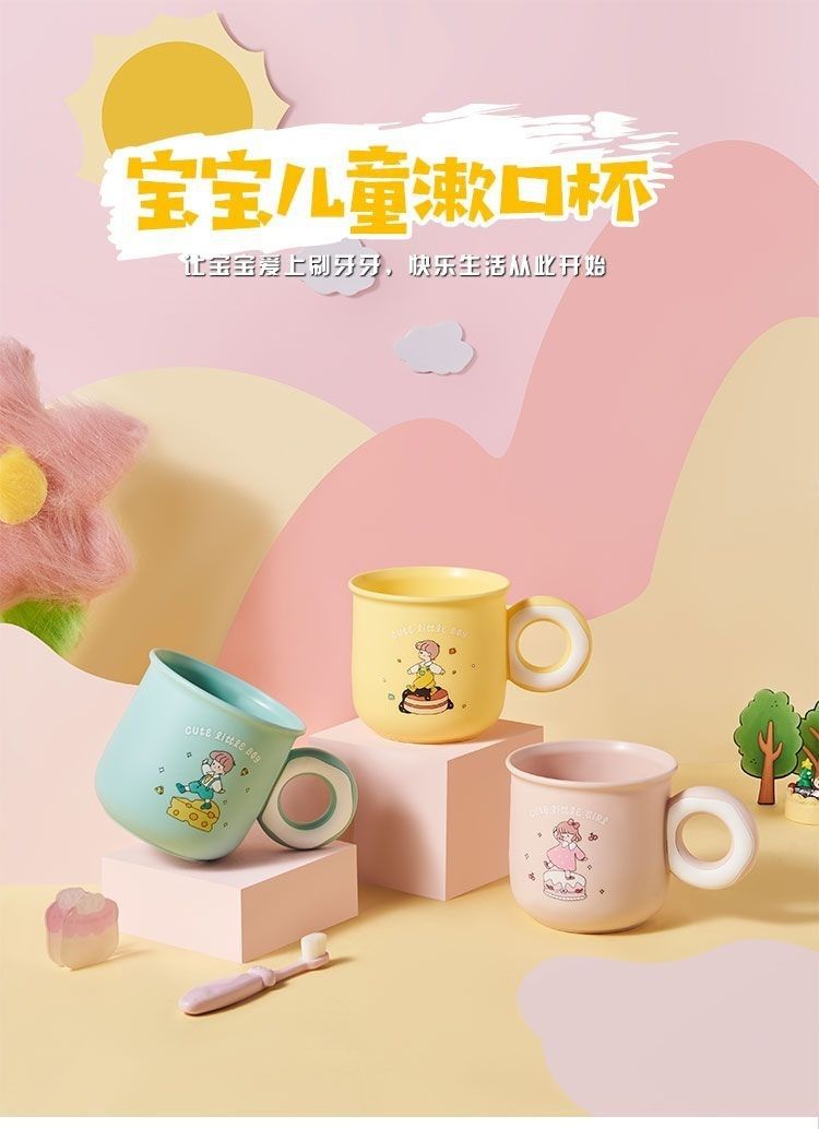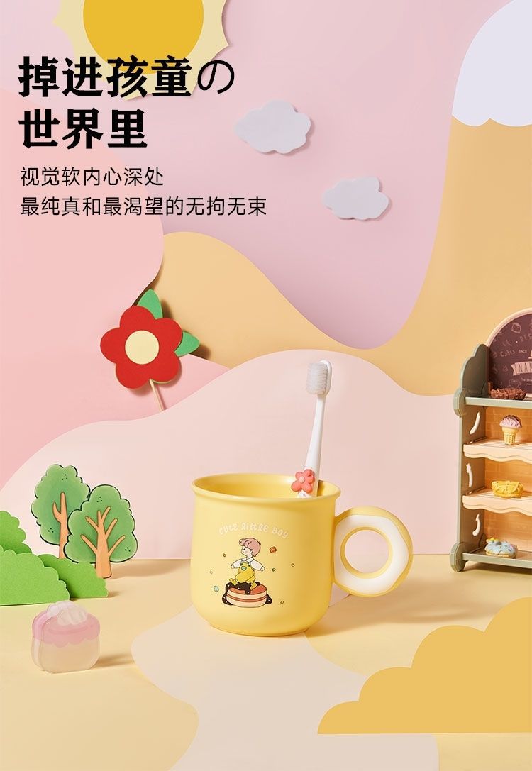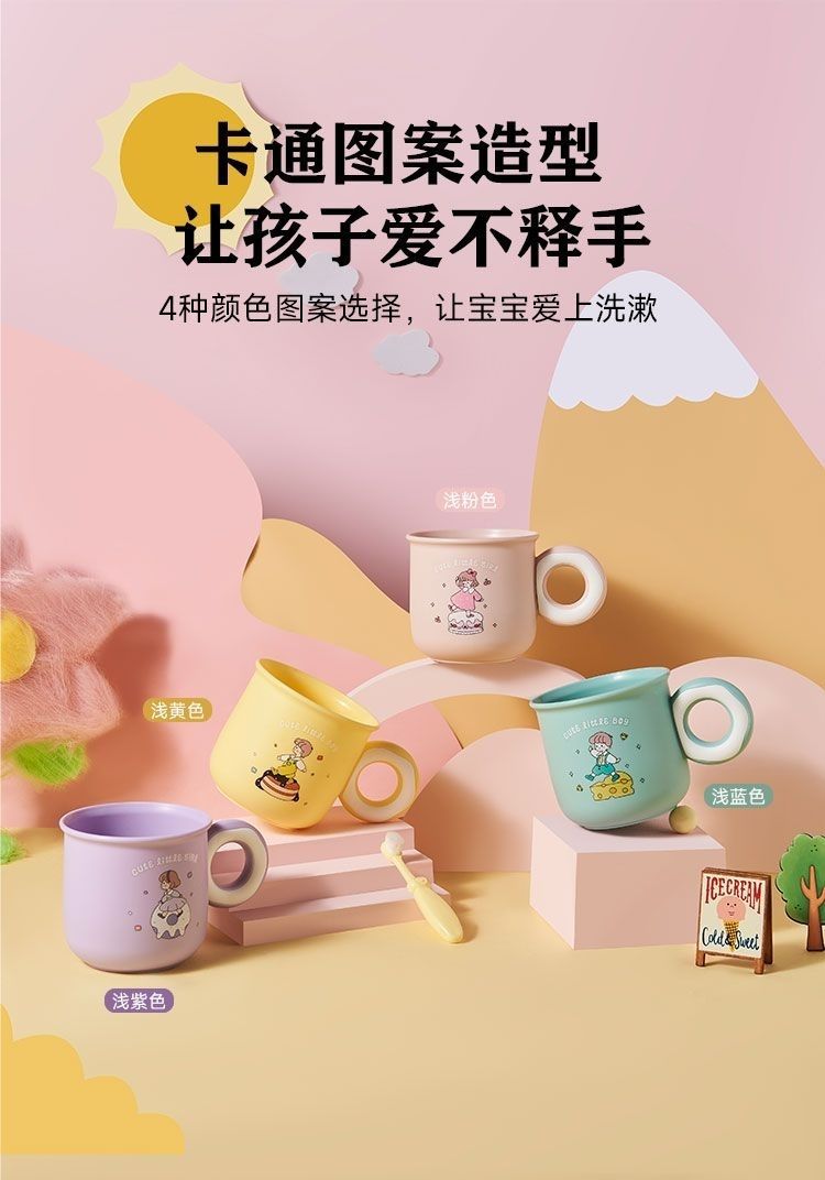 漫画かわいい子供うがいカップブラッシングカッププラスチック歯タンクカップ学生うがいカップハンドルカップミルクカップ
