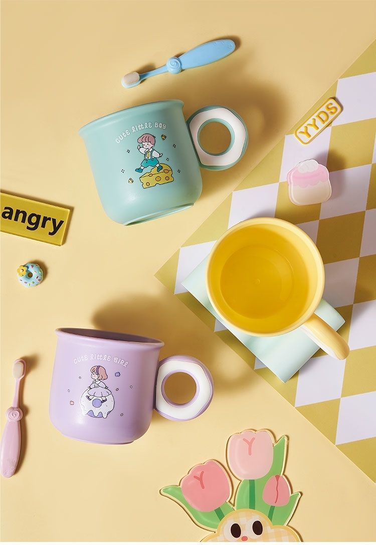 漫画かわいいブラッシングうがいカップカップルうがいカップins风家庭用カップ歯カップ学生寮水カップ
