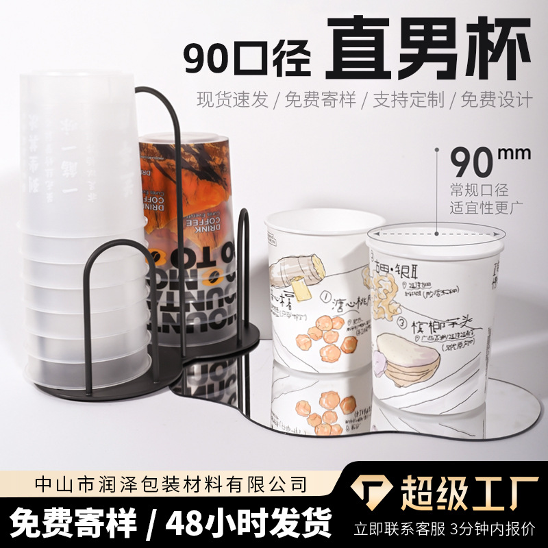 90 口径ストレートメンズカップインターネット有名人ストレートミルクティーカップ使い捨てつや消し肥厚脂肪包装プラスチックカップオプションの蓋