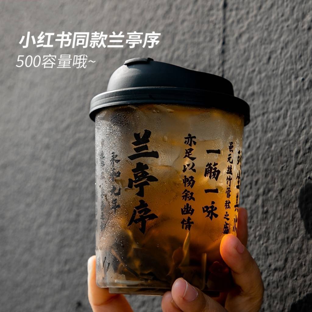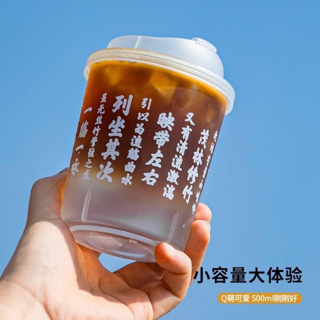 ネットで話題の男性向けカップ500ml、つや消し射出成形カップ、使い捨てミルクティーカップ、インスタ映えする中華風コールドドリンク用持ち帰りカップ