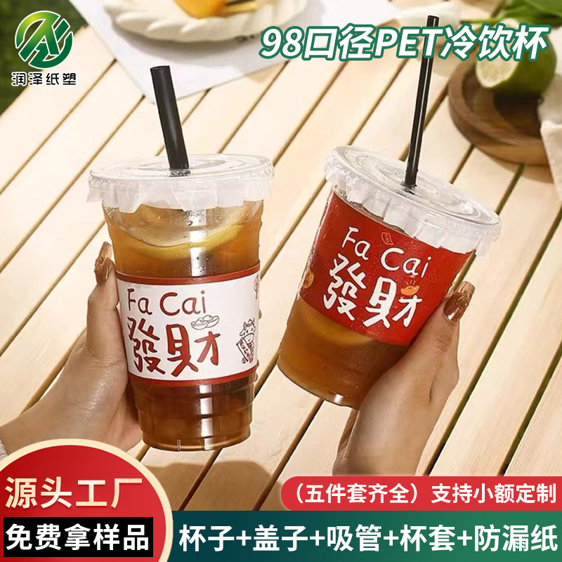 98口径ミルクティーカップ使い捨てpet冷たい飲み物コーヒーレモンティーカップ近所の喫茶店ミルクティー店卸売り