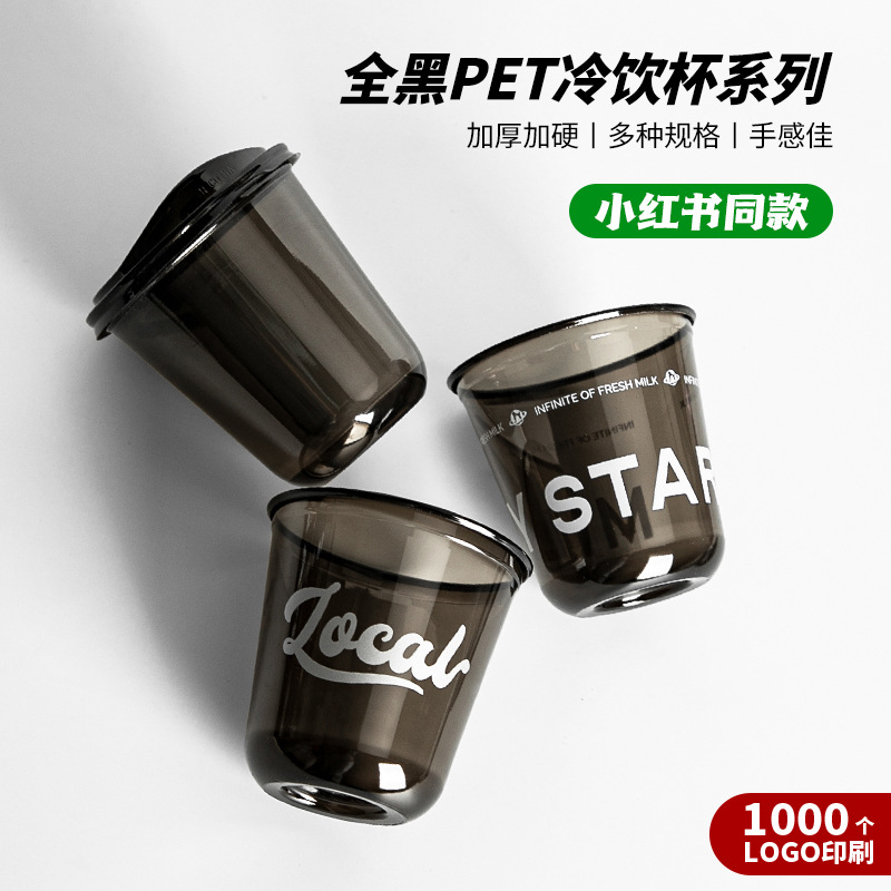 黒ミルクティーカップ使い捨てミルクティーカップPETミルクティーカップコーヒーカップ冷たい飲み物カッププラスチックカップ黒透明カップ