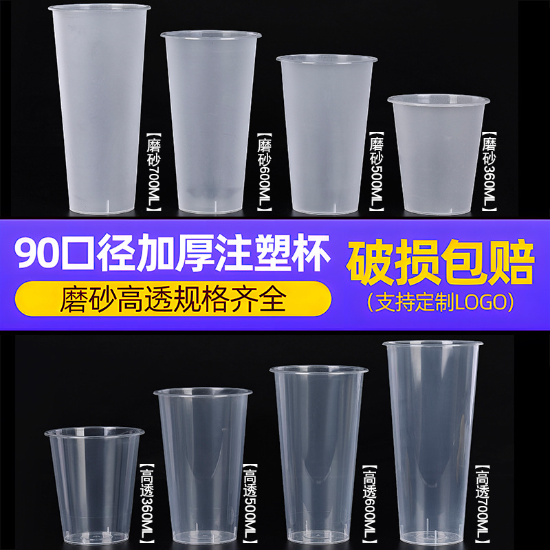 90口径使い捨てミルクティーカップ商用カップ500/700ml研磨カッププラスチック冷たいカップpp射出カップ