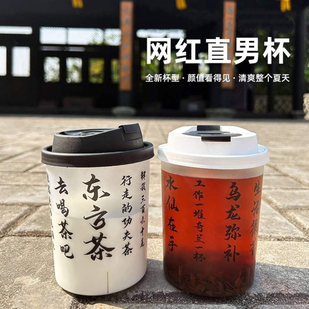 直男杯レモン茶直筒円形ミルクティーカップ使い捨てミルクティーカップ太ったカップ射出ストレートカップ
