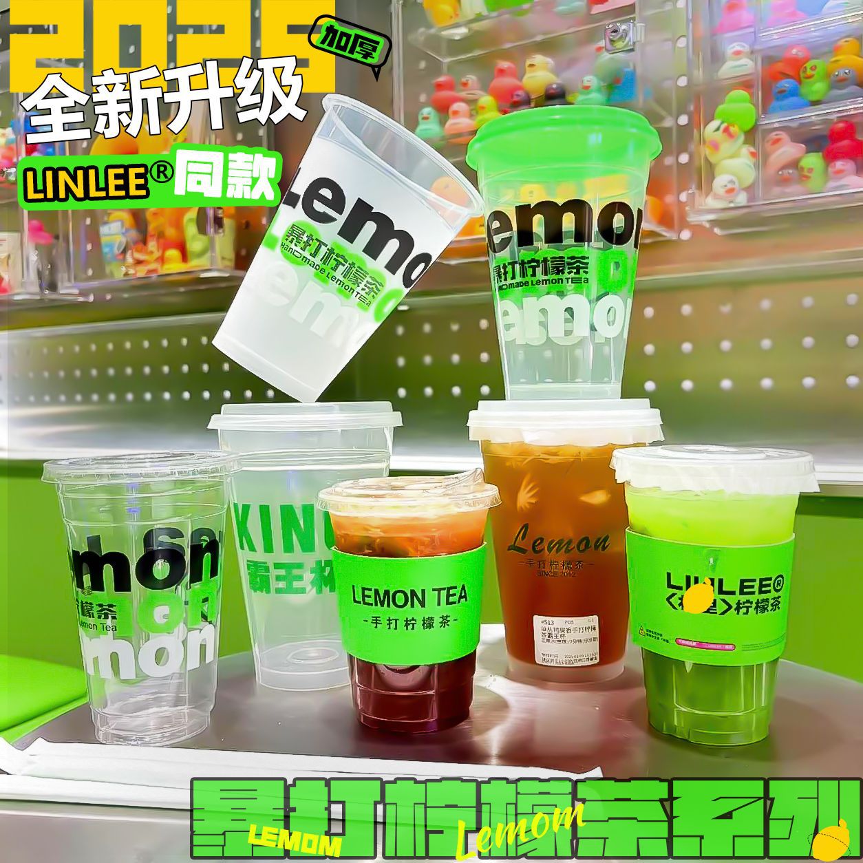 レモン茶カップ使い捨て蓋付き98口径手打レモン茶500ml出店専用カップpet透明カップ