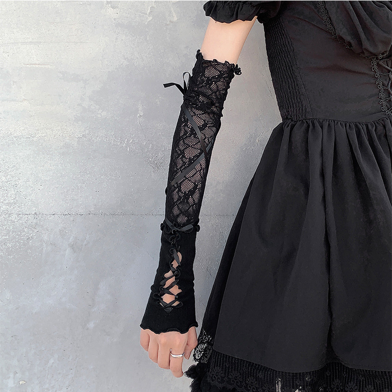 Lolita手袖長いレース手袋女性高級感日焼け止め袖カバーギャルセクシーストラップ腕袖薄いタイプ