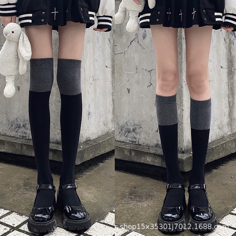 色合わせの靴下の女性の春秋の金の中筒の黒い灰色は長い筒をつづり合わせて膝の半分の足のinsの潮の学生の黒いすねの靴下を越えます。